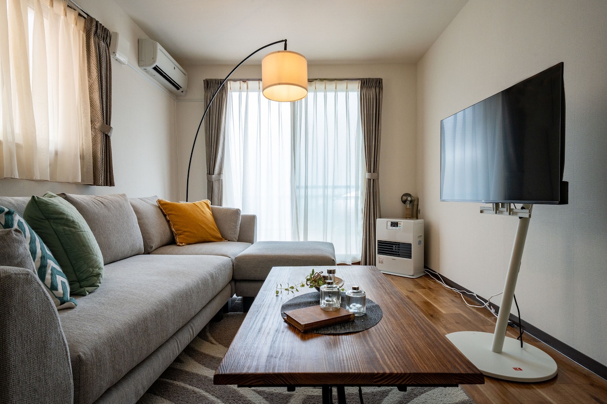 Αυτό το μοντέρνο διαμέρισμα 2 υπνοδωματίων (4 διπλά κρεβάτια) στο Kita Ward, Sapporo, ανακαινίστηκε πλήρως τον χειμώνα του 2023. Προσφέρει έναν καθαρό και ήσυχο χώρο για έως και 8 επισκέπτες. Απέχει μόλις 5 λεπτά με τα πόδια από τον σταθμό του μετρό Kita 34jo, 15 λεπτά με το αυτοκίνητο από τον σταθμό Sapporo. Ένα παντοπωλείο και το Toyota Rent-a-Car βρίσκονται σε απόσταση 1 λεπτού με τα πόδια. Δωρεάν χώρος στάθμευσης είναι διαθέσιμος για 2 αυτοκίνητα μπροστά από το κτίριο. Άφιξη από τις 3:00 μ.μ., αναχώρηση έως τις 11:00 π.μ. Το κατάλυμα είναι εντελώς μη καπνιστών, συμπεριλαμβανομένων των ηλεκτρονικών τσιγάρων.