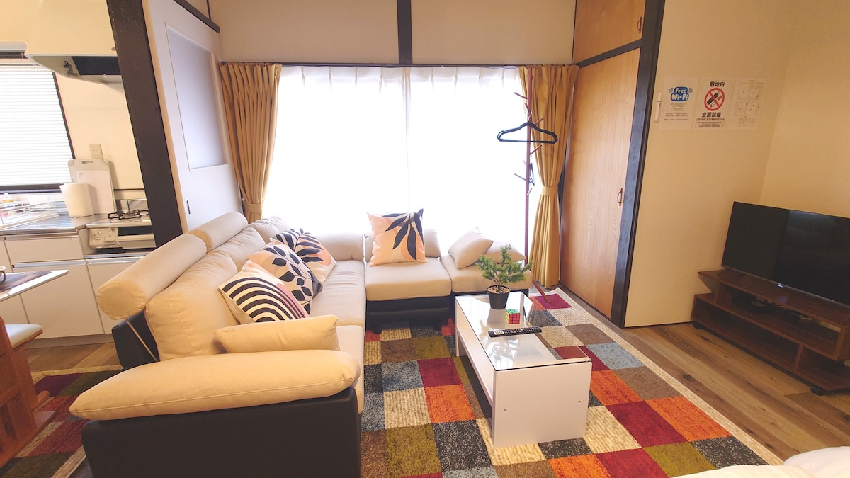 Welcome to "Grace by Family Suite"! Just 3 stops from Nagoya Station and a short walk from Nakamura Nisseki Station, this cozy 1-bedroom apartment is tucked away in a peaceful neighborhood. Ideal for couples, small families, or remote workers. With warm, natural interiors and a comfy workspace with a monitor and desk lamp, it’s perfect for both relaxing and working. We hope your stay becomes a gentle and memorable part of your journey.