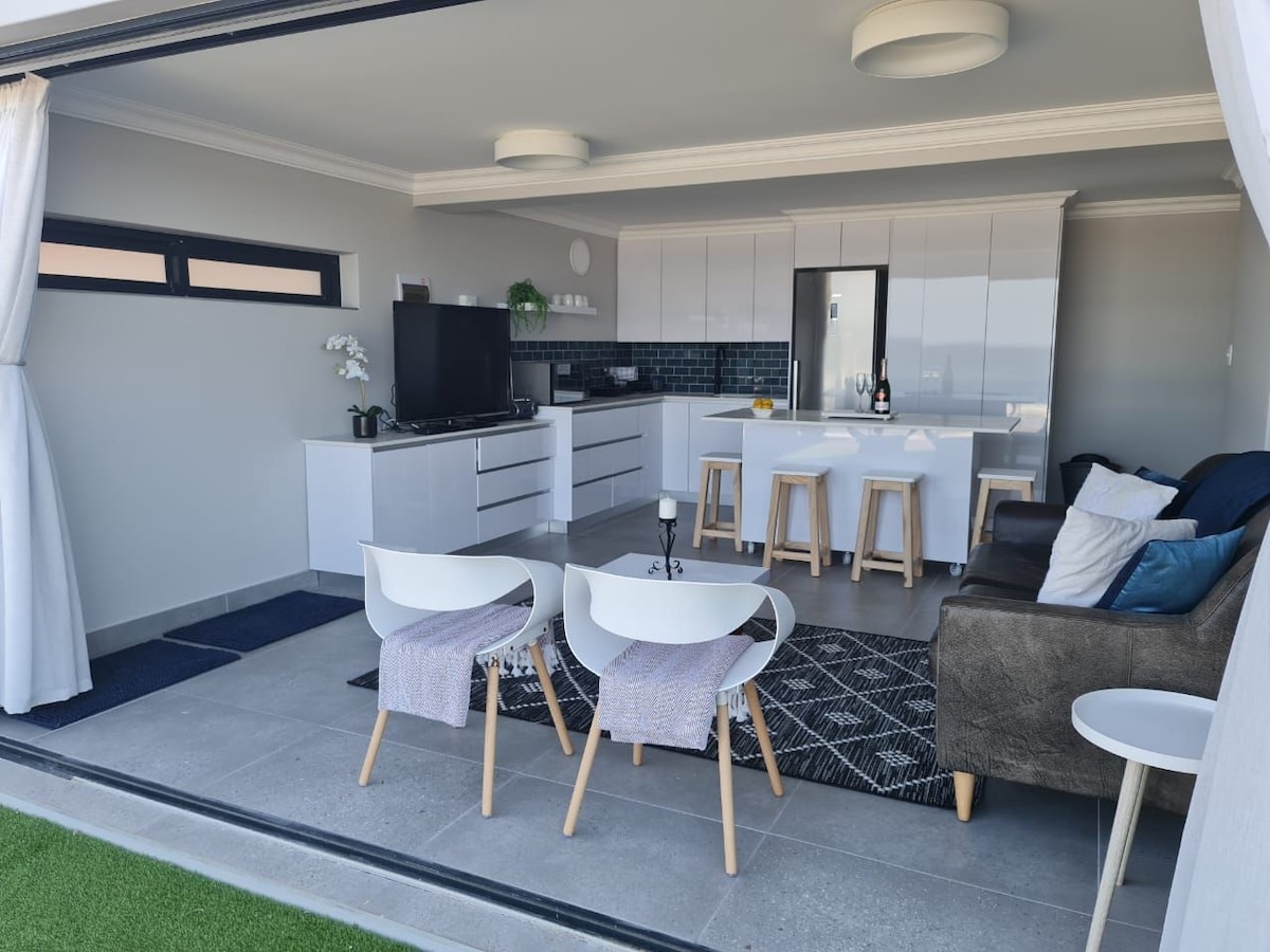 Καλώς ήρθατε! Το δεύτερο σπίτι σας! Το ευρύχωρο νέο αναβαθμισμένο διαμέρισμά μας βρίσκεται στο κεντρικό Mossel Bay και προσφέρει εκπληκτική θέα στη θάλασσα και τα βουνά, ιδανικό για οικογένειες τεσσάρων ατόμων (2 ενήλικες, 2 παιδιά). Απολαύστε ένα μεγάλο υπνοδωμάτιο (διπλό κρεβάτι) άνετο σαλόνι με άνετο διπλό καναπέ-κρεβάτι και πλήρως εξοπλισμένη κουζίνα. Χαλαρώστε δίπλα στην πισίνα και απολαύστε μπάρμπεκιου σε εσωτερικό/εξωτερικό χώρο. Απεριόριστο WiFi, Netflix και DSTV, όλα όσα χρειάζεστε για μια τέλεια διαμονή. Μόλις 2,5 χλμ. από την παραλία και τα ψώνια, είναι η ιδανική απόδραση!