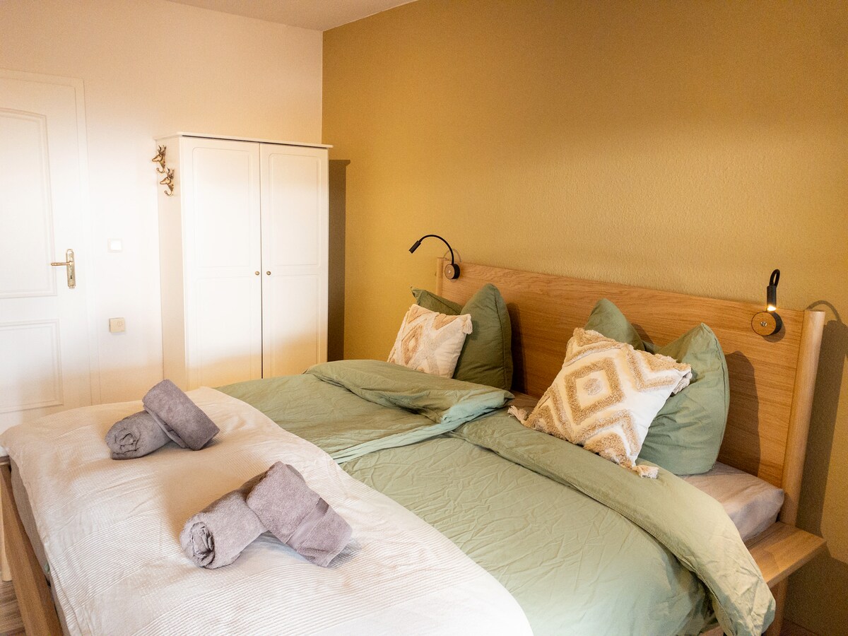 Το άνετο, φωτεινό διαμέρισμα ρετιρέ μας είναι ένας χώρος χαλάρωσης κοντά στο κέντρο της πόλης (περίπου 5 χλμ. από το κέντρο). Το ξεχωριστό διαμέρισμα αποτελείται από υπνοδωμάτιο, σαλόνι-τραπεζαρία (διθέσιο, τηλεόραση, καθιστικό) καθώς και ιδιωτικό μικρό μπάνιο με ντους και τουαλέτα και έναν όμορφο κήπο με καθιστικό. Οι προετοιμασίες των εξετάσεων είναι δυνατές χωρίς προβλήματα, καθώς είναι πολύ ήσυχα μαζί μας. Τα κέντρα κατάρτισης βρίσκονται σε κοντινή απόσταση: εργοθεραπεία, ακουστικά βοηθήματα περίπου 5 λεπτά.Πανεπιστήμιο 15 λεπτά. Εκθεσιακοί χώροι περίπου 7 λεπτά.