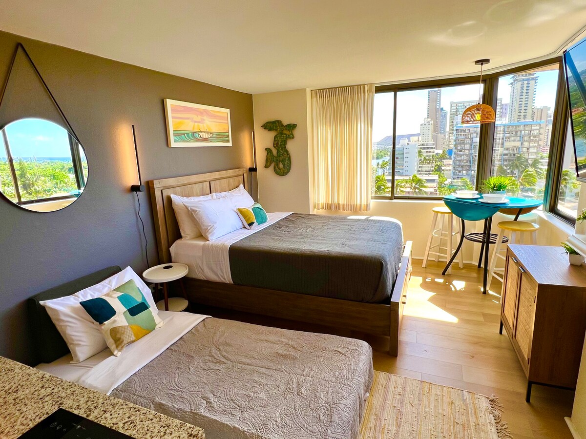 1 τετράγωνο από την παραλία Waikiki! Πρόσφατα ανακαινισμένο διαμέρισμα με υπέρδιπλο κρεβάτι