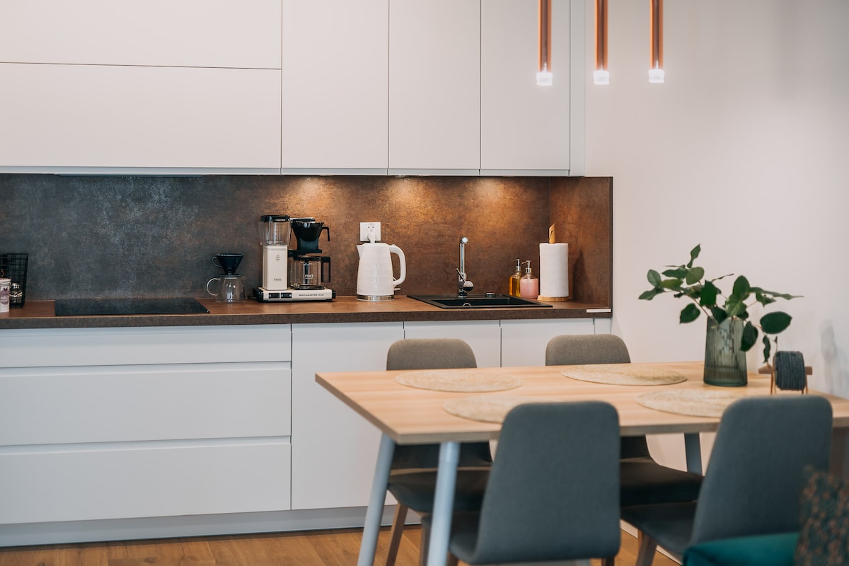 Ένα μοντέρνο, ευρύχωρο και άνετο διαμέρισμα στο συγκρότημα "Platany" που βρίσκεται στο νησί Solna στο κέντρο του Kolobrzeg. Το διαμέρισμα με μπαλκόνι και όμορφη θέα στο κανάλι Drzewny βρίσκεται στον 5ο όροφο ενός κτιρίου εξοπλισμένου με ασανσέρ. Κατάλληλο για έως 4 άτομα, είναι η τέλεια επιλογή για διακοπές με φίλους ή συγγενείς, καθώς και για εξ αποστάσεως εργασία. Για τους γονείς που ταξιδεύουν με μικρά παιδιά, διατίθενται επίσης βρεφικό κρεβάτι και καρεκλάκι φαγητού (κατόπιν αιτήματος).