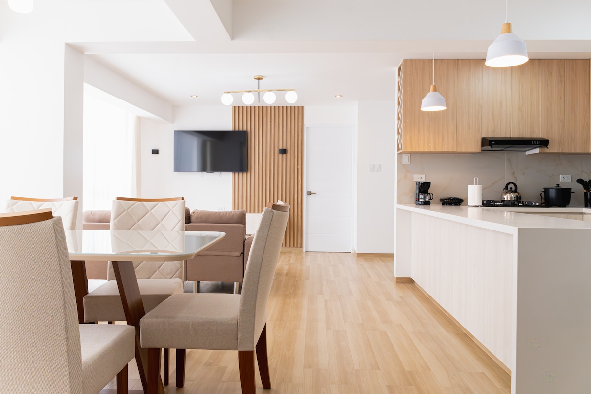 Απολαύστε μια μοναδική εμπειρία σε αυτό το ολοκαίνουργιο, μοντέρνο και ευρύχωρο διαμέρισμα που έχει σχεδιαστεί για την άνεσή σας. Βρίσκεται στον δεύτερο όροφο και προσφέρει μια ήρεμη διαμονή και εξαιρετική πανοραμική θέα στην πόλη του Κούσκο. Με 3 άνετα υπνοδωμάτια για έως 6 επισκέπτες και 3 ιδιωτικά μπάνια, είναι ιδανικό για οικογένειες και παρέες. Μόλις 5 λεπτά από την Plaza de Armas και κοντά σε αρχαιολογικούς χώρους όπως η Mesa Redonda y San Blas. Ένας τέλειος χώρος για άνεση και σύνδεση.