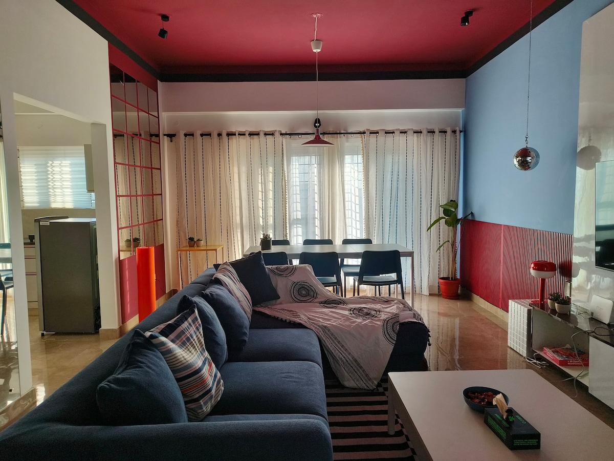 Πολύχρωμο, ευάερο, άνετο 1BHK | κοντά στο NIFT | Κατάλληλο για ζευγάρια