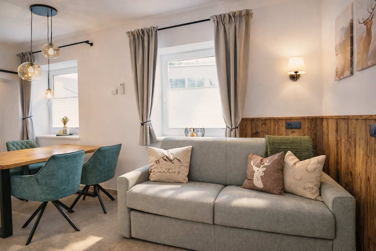 Καλώς ήρθατε στο διαμέρισμα "Strumpfburg" στο Kramsach! Απολαύστε το μοντέρνο και ήσυχο διαμέρισμα διακοπών μας για έως 4 άτομα: ▶ Κρεβάτι με σπείρες (180x200 εκ.) ▶ Καναπές-κρεβάτι για 2 επιπλέον επισκέπτες ▶ Βρεφική κούνια ▶ Έξυπνη τηλεόραση με Netflix, Amazon Prime. ▶ Πλήρως εξοπλισμένη κουζίνα ▶ Ήσυχο μπαλκόνι με θέα στο βουνό. ▶ Αποθηκευτικός χώρος για εξοπλισμό σκι που κλειδώνει. ▶ Πλυντήριο ρούχων ▶ Εξοπλισμός γιόγκα ▶ Συλλογή παιχνιδιών ▶ Ανελκυστήρας - προσβάσιμος σε αναπηρικό αμαξίδιο ▶ Δωρεάν στάθμευση ▶ Χώρος σκι 15 λεπτά μακριά. ▶ Τοπικές ταξιδιωτικές συμβουλές πριν από την άφιξη