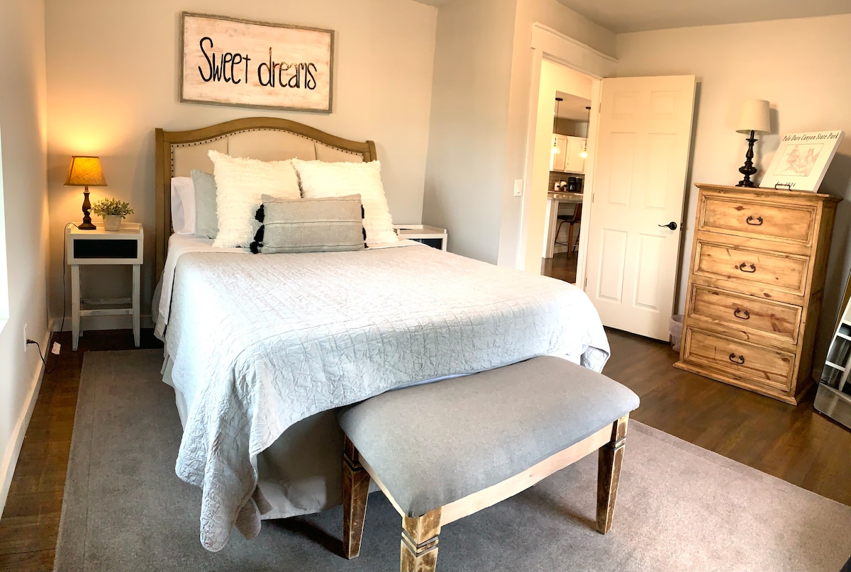 Πολύ χαριτωμένο και άνετο! "ΠΡΟΣΦΑΤΑ ΑΝΑΚΑΙΝΙΣΜΈΝΟ" Σπίτι ενός υπνοδωματίου με ιδιωτικό δρόμο, χώρο στάθμευσης εκτός δρόμου. Τέσσερα τετράγωνα από την ιστορική πλατεία της πόλης με ψώνια και φαγητό διαθέσιμα. 5 λεπτά με το αυτοκίνητο από το Πανεπιστήμιο και 15 λεπτά με το αυτοκίνητο από το Palo Duro Canyon State Park.