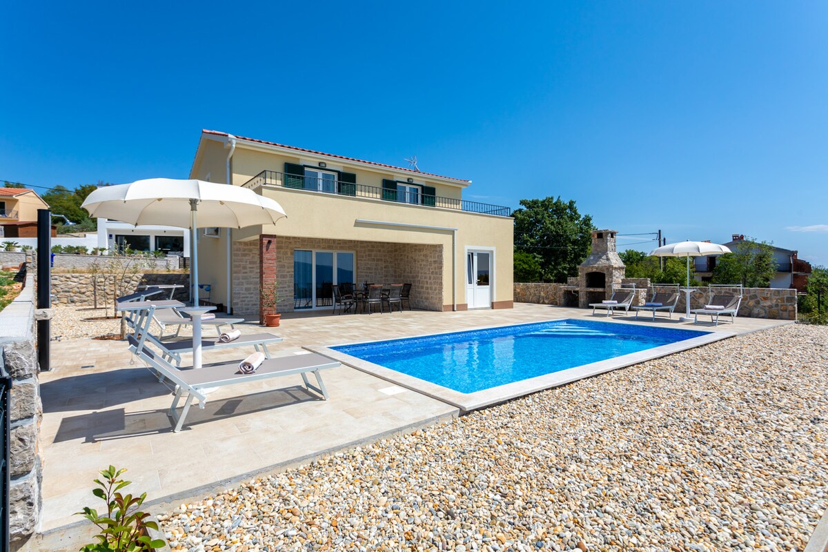 Βίλα στο Pinezici, νησί Krk για 6 - 8 άτομα. Απλώνεται σε δύο ορόφους και διαθέτει τρία διπλά υπνοδωμάτια και τέσσερα μπάνια. Μια σκεπαστή βεράντα με χώρο μπάρμπεκιου, εξωτερικό χώρο με πισίνα και υπαίθριο ντους είναι ιδανικά για μια διασκεδαστική καλοκαιρινή μέρα με φίλους και οικογένεια. Το πάνω μπαλκόνι, προσιτό από τα υπνοδωμάτια, προσφέρει όμορφη θέα στη θάλασσα και τη φύση. Πλήρως εξοπλισμένο και κοντά στην παραλία, αυτό το σπίτι είναι μια τέλεια επιλογή για τις διακοπές σας στο νησί Krk. Θέση στάθμευσης.