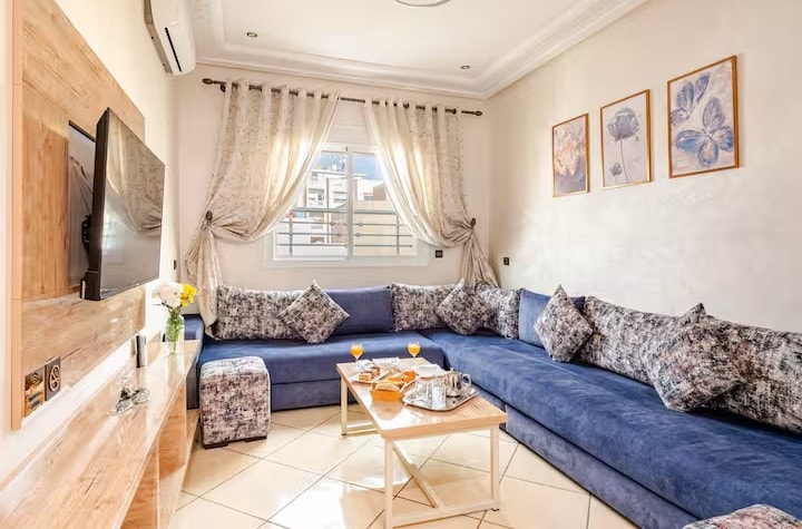 Ζήστε την Ταγγέρη με απόλυτη άνεση σε αυτό το ευρύχωρο διαμέρισμα 3 υπνοδωματίων, φωτεινό, πλήρως εξοπλισμένο και ιδανικά τοποθετημένο ακριβώς μπροστά από το Marjane – Route de Rabat 🌞 Απολαύστε μια βολική τοποθεσία, σύγχρονη άνεση και έναν ιδανικό χώρο για οικογένειες, παρέες φίλων ή ταξιδιώτες για επαγγελματικούς σκοπούς. ℹ️ Σημαντικό: Σύμφωνα με τη μαροκινή νομοθεσία, τα άγαμα ζευγάρια από το Μαρόκο δεν μπορούν να φιλοξενηθούν μαζί.