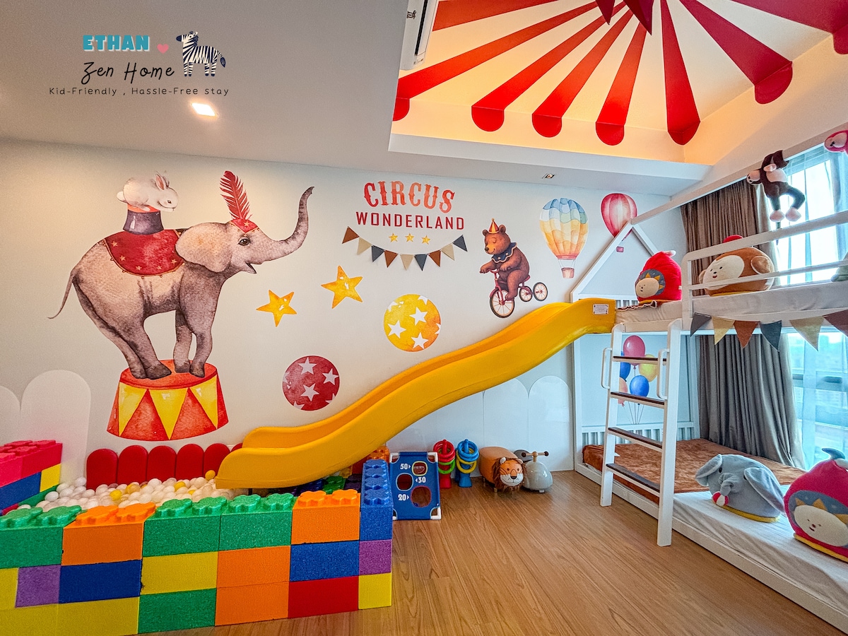 Circus Wonderland, ένα φιλικό προς τα παιδιά κατάλυμα σε στυλ διαμερίσματος με θέμα το τσίρκο, όπου τα παιδιά μαθαίνουν για τα ζώα, περνούν από την τσουλήθρα σε μια πισίνα με μπάλες και παίζουν ανεξάρτητα ενώ οι γονείς κάθονται, χαλαρώνουν και απολαμβάνουν τις διακοπές. Βρισκόμαστε στο Μπουκίτ Μπιντάγκ της Κουάλα Λουμπούρ και κοντά σε περισσότερα από 40 αξιοθέατα, σε απόσταση 10 λεπτών με τα πόδια από: Jalan Alor Petaling Street (Chinatown) Times Square Lalaport TRX Mall Pavilion KL Η μονάδα μας απολυμαίνεται μετά από κάθε διαμονή για την άνεση της οικογένειάς σας.
