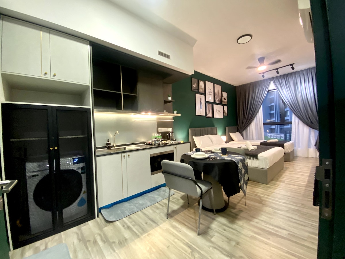 Καλώς ήρθατε στο στούντιο μας στην Airbnb, όπου η διαμονή και ο νεωτερισμός συνδυάζονται αρμονικά για να δημιουργήσουν μια αξέχαστη εμπειρία για τη διαμονή σας. Σχεδιασμένο με σχολαστική προσοχή στις λεπτομέρειες, ελπίζουμε να απολαύσετε μια άνετη και μοναδική διαμονή κοντά στο Mid Valley. Παρέχουμε 1 δωρεάν χώρο στάθμευσης και WiFi στον επισκέπτη μας. Το στούντιο μικρού μεγέθους χωράει 2 άτομα. Αυτό το στούντιο διαθέτει κουζίνα, ιδιωτικό μπάνιο, κρεβάτι queen size, καναπέ, τηλεόραση και WiFi. Παρέχονται επίσης πλυντήριο, ψυγείο, κουζίνα!