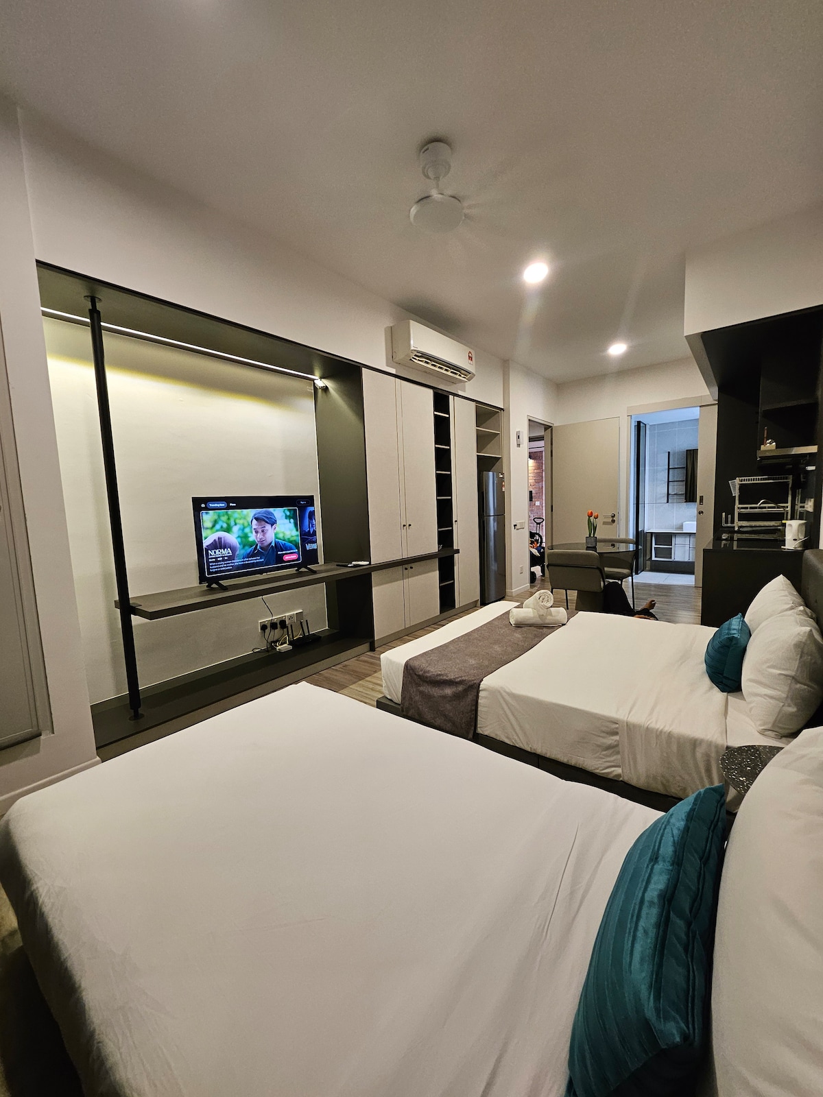 📍Pertama Residency Welcome to my New Bnb - Moonrise City! This studio is newly set up with lots of love, combines contemporary decor with modern amenities and an experience all can enjoy especially Jacuzzi moment with your love & 120” projector screen w/Netflix. This unique place has a style all its own, it offers a cozy, clean, quiet & refreshing stay environment for couples. Come and experience in the new bnb! See you.