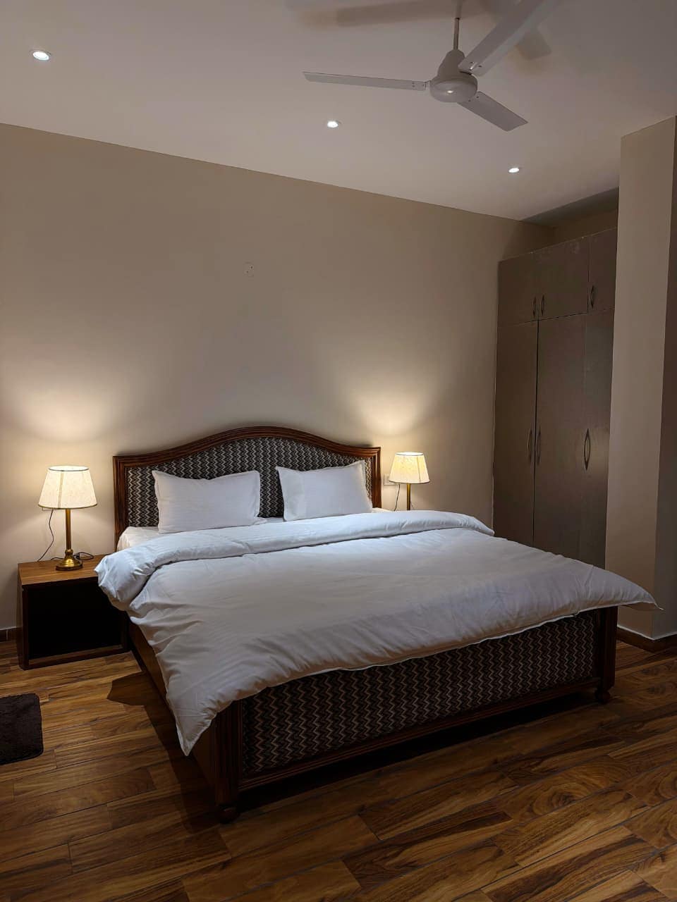 A stylish 4BR hotel-away-from-home located in the heart of Eastside with attached sunny balcony. Bedroom 1: queen bed, the kitchen has a Nespresso and everything you need to cook, TV, Almira, electric kettle, dedicated workspace. Bedroom 2, 3 & 4: Queen bed, TV, Almira, electric kettle, dedicated workspace. You’ll be steps from local cafés and a 10-minute drive to Sadhupul on one side and 12-minute drive to Kandaghat. 24-hour reception desk is available for any assistance.