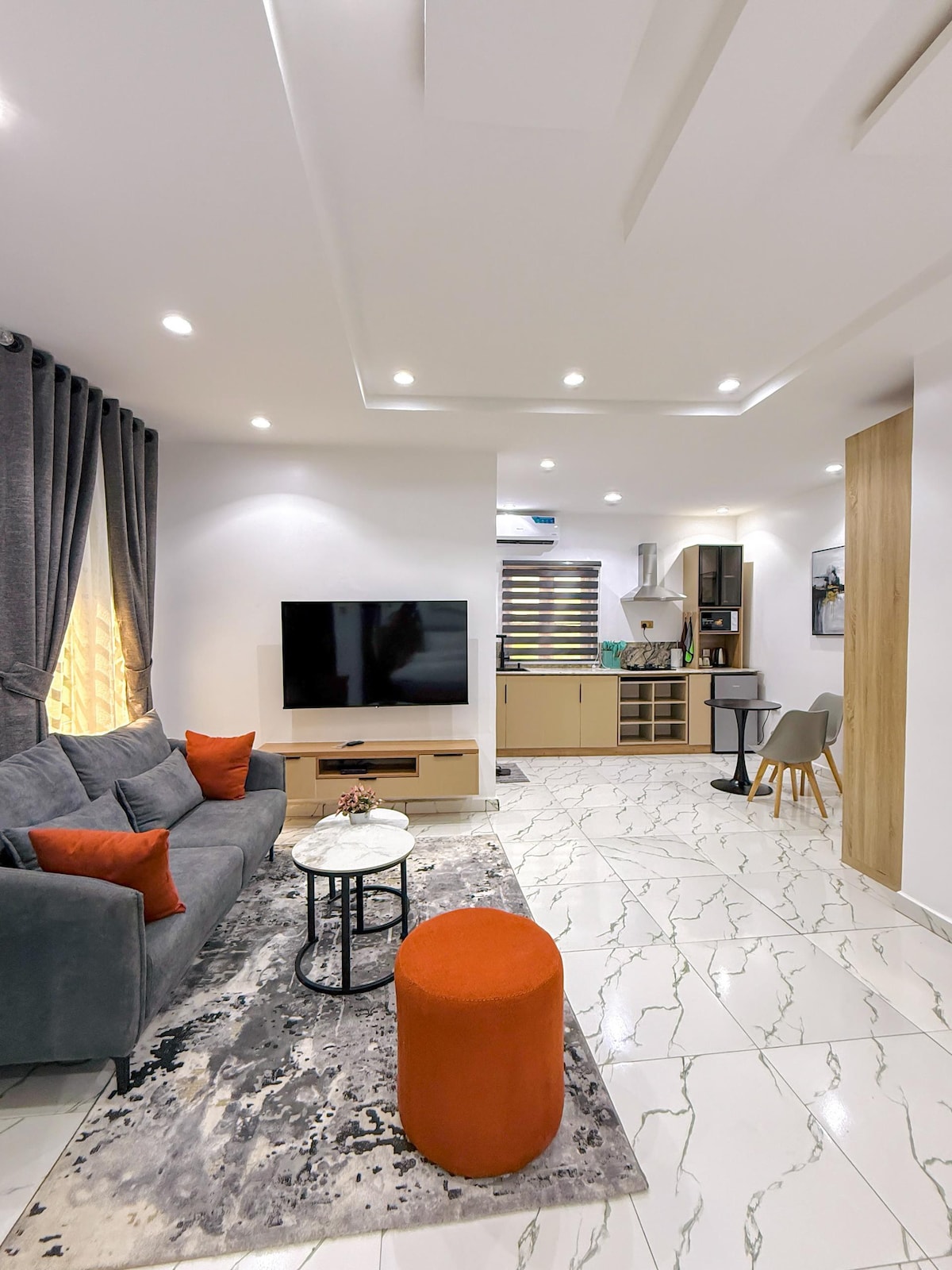 Καλώς ήρθατε στο κομψό διαμέρισμα 2 υπνοδωματίων στο Sungold Estate, μόλις 4 λεπτά από τον κυκλικό κόμβο Galadimawa και το Harmony Estate. Ιδανικό για επαγγελματίες ή μικρές οικογένειες, διαθέτει ένα διπλό κρεβάτι στο κύριο δωμάτιο με ιδιωτικό μπάνιο, ένα διπλό κρεβάτι στο δεύτερο δωμάτιο, ένα άνετο σαλόνι με τηλεόραση 55 ιντσών και μια πλήρως εξοπλισμένη κουζίνα με φούρνο τεσσάρων εστιών, ψυγείο και φούρνο μικροκυμάτων και 24ωρη ασφάλεια, σταθερό WIFI και σταθερό ηλεκτρικό ρεύμα. (Απαιτούνται τουλάχιστον 2 επισκέπτες)