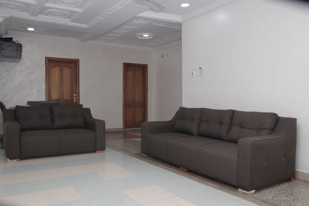 Have fun with the whole family at this serene stylish flat. This simple clean 3-bedroom suite in Kumasi, features a luxury 3 bathrooms, modern kumasi architecture, and prime location just 10 minutes from Kumasi Airport. Enjoy the convenience of private parking, free WiFi, a 55" Smart TV, and 3 smart TVs in all rooms, open kitchen and dining. With a backup power plant, professional team, and 24/7 strict security, your comfort is our priority.