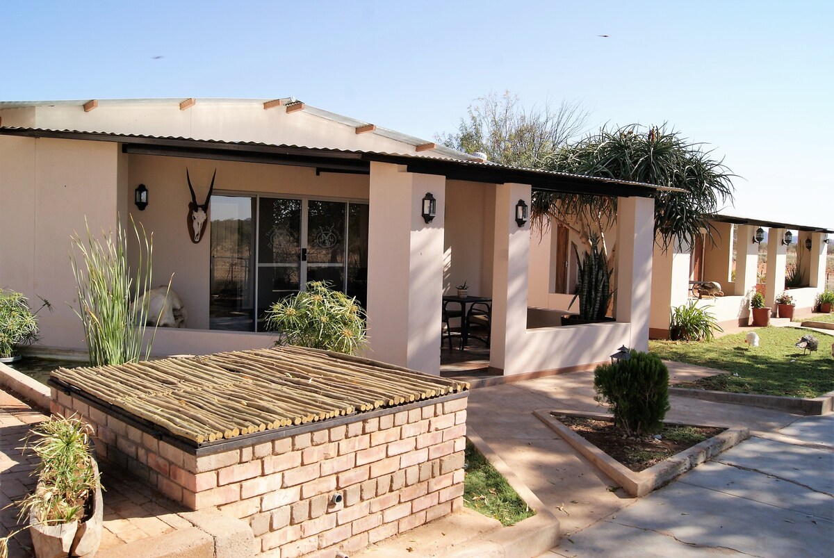 Κάντε ένα διάλειμμα στο δρόμο σας προς Etosha, Kaokoland ή Damaraland? Θα έχετε την ιδιωτικότητά σας σε ένα ήσυχο και καλά εξοπλισμένο αγροτόσπιτο? Μπορείτε να απολαύσετε πεζοπορία, οδηγοί παιχνιδιών, εκπληκτικά ηλιοβασιλέματα και ένα μπάρμπεκιου κάτω από τα αστέρια? θα είστε σε θέση να ζήσετε την καθημερινή ζωή σε μια Ναμίμπια πρόβατα και φάρμα βοοειδών.