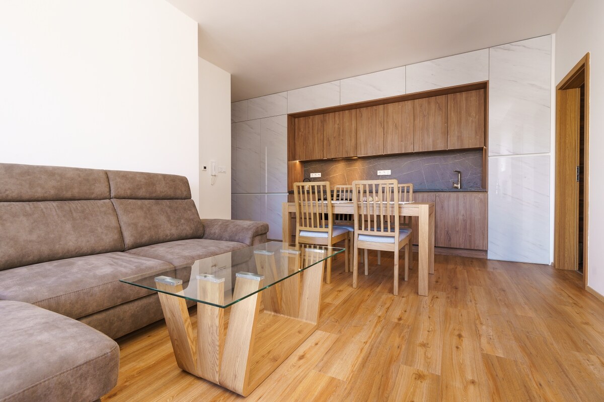 Ένα ολοκαίνουργιο ορεινό διαμέρισμα με γενναιόδωρη διαρρύθμιση 3+kk (52m2) βρίσκεται σε άμεση απόσταση από το χιονοδρομικό κέντρο Klínovec (250m από το τελεφερίκ). Το διαμέρισμα διαθέτει 2 υπνοδωμάτια για 2 + 2 άτομα, σαλόνι με μεγάλο καναπέ, πλήρως εξοπλισμένη κουζίνα, πλυντήριο πιάτων, φούρνο μικροκυμάτων και κλασικό φούρνο, τηλεόραση και μπάνιο με ντους. Το πλεονέκτημα είναι το πολυτελές περιβάλλον του διαμερίσματος και η υπερπολυτελής βεράντα 23 τ.μ. από την οποία απολαμβάνετε την υπέροχη και ανεμπόδιστη θέα στην κοιλάδα Loučná. Αυτός ο χώρος προσφέρει χαλαρή και ανενόχλητη ξεκούραση.