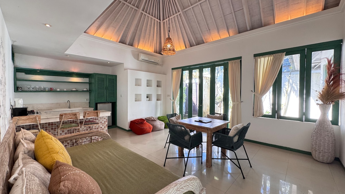 Αυτή η εκπληκτική ιδιωτική βίλα 3 υπνοδωματίων/3 μπάνιων συνδυάζει την τροπική γοητεία με τις σύγχρονες ανέσεις, μόλις 5 λεπτά από την παραλία! Ιδανικό για οικογένειες ή παρέες, απολαύστε ηλιόλουστους ανοιχτούς χώρους διαβίωσης, πλήρως εξοπλισμένη κουζίνα και πολυτελή υπνοδωμάτια με ιδιωτικό μπάνιο σχεδιασμένα για απόλυτη χαλάρωση. Κρυμμένο σε μια από τις πιο ζωντανές γειτονιές του Μπαλί, απέχετε λίγα λεπτά από το Finns Beach Club, το Atlas, κορυφαίες καφετέριες, στούντιο γιόγκα, μπουτίκ και νυχτερινή ζωή.