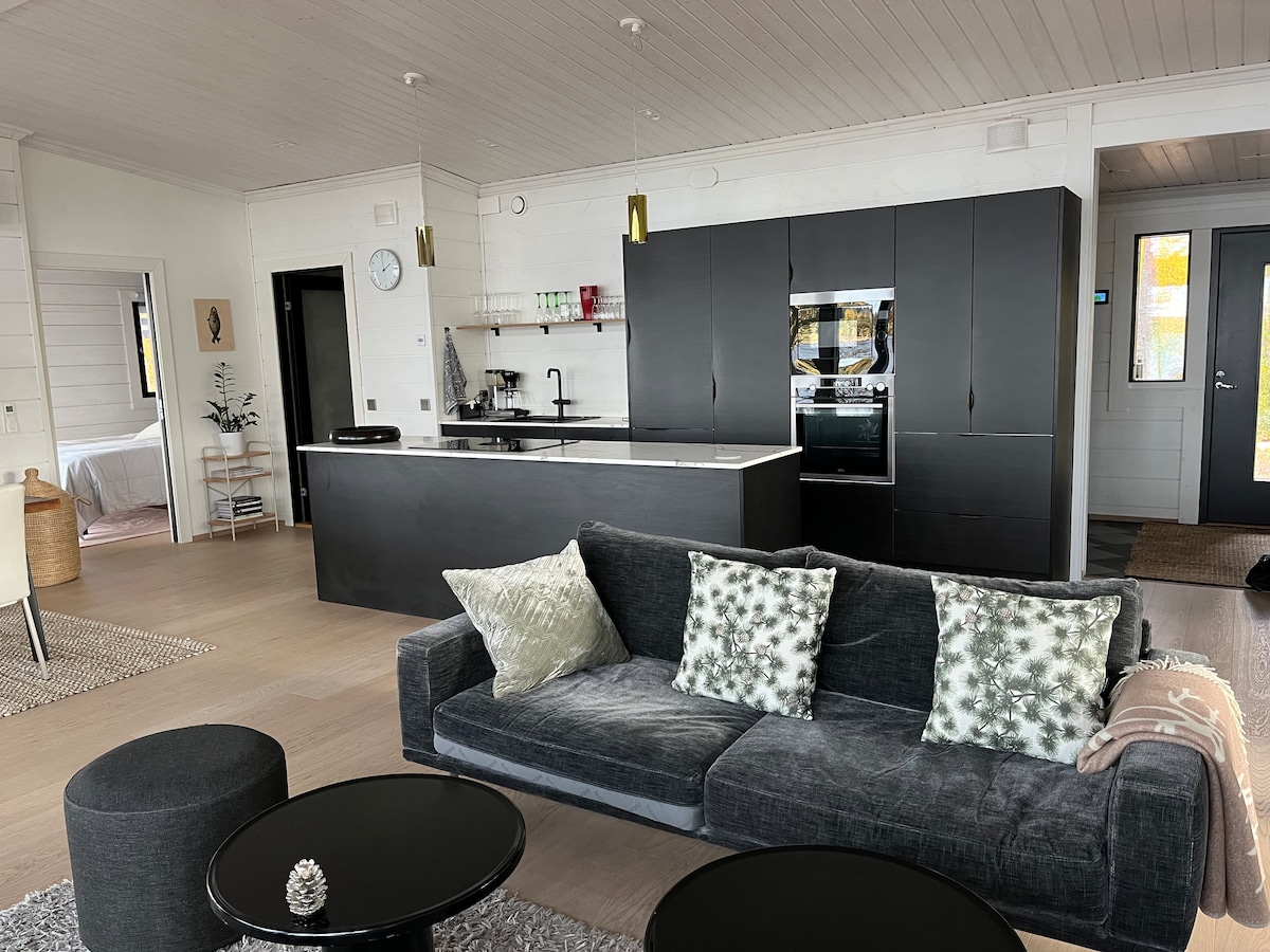 Καλώς ήρθατε να απολαύσετε ένα νέο, μοντέρνο σπίτι στην ακτή της λίμνης Saimaa! Αυτό το κομψό και καλά εξοπλισμένο σπίτι παρέχει το ιδανικό σκηνικό για χαλάρωση στη φύση, μακριά από την κίνηση και μόνο 15 λεπτά από το κέντρο της Lappeenranta. Τα μεγάλα παράθυρα του σπιτιού και οι τρεις βεράντες ανοίγουν σε μια εκπληκτική θέα στη λίμνη που μαγεύει κάθε εποχή. Υπάρχει χώρος για οκτώ άτομα, οπότε είναι ιδανικό για οικογένειες, παρέες φίλων ή συνεργάτες. Ήρεμα και ασφαλή.