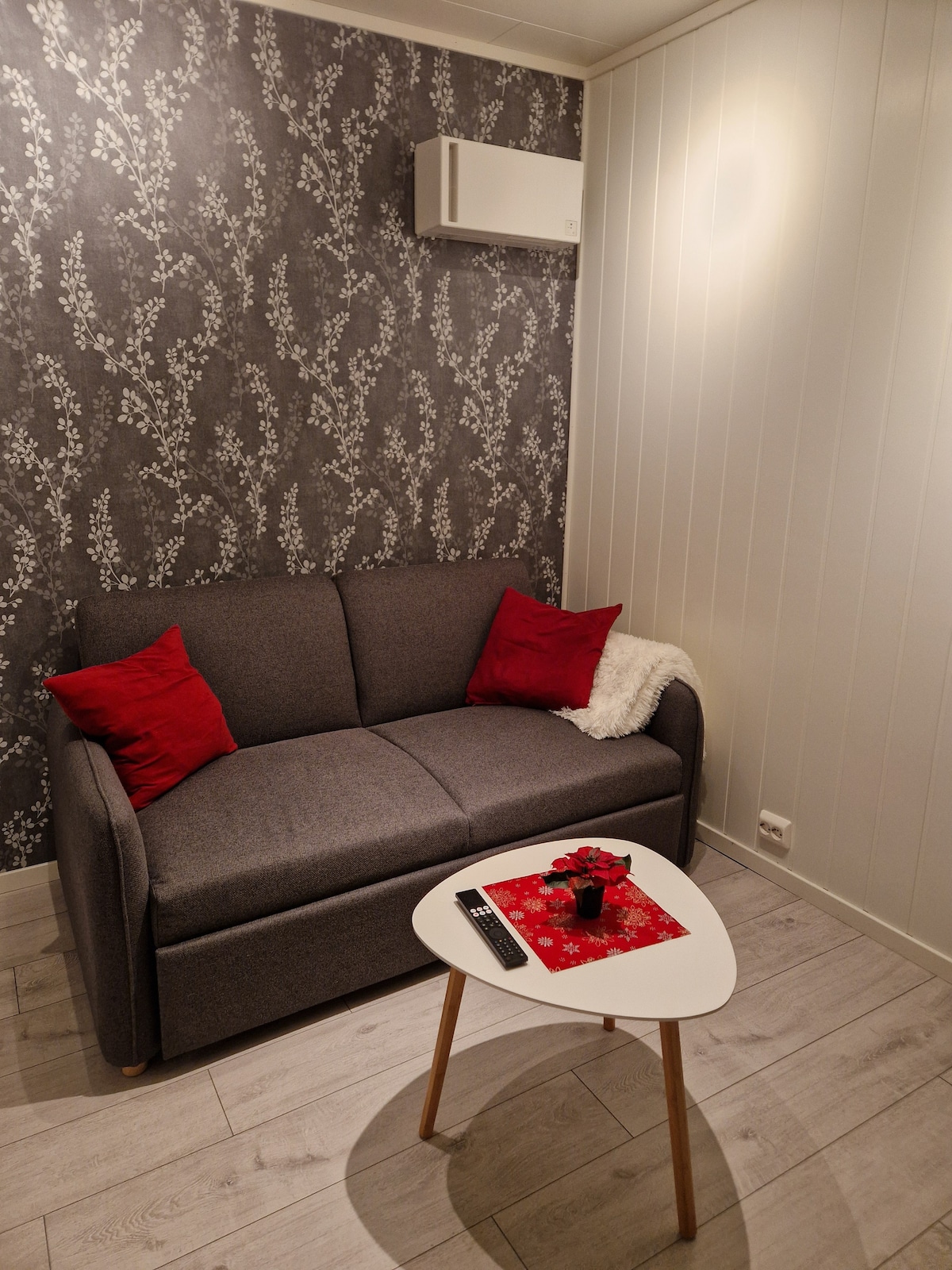 Το διαμέρισμα ολοκληρώθηκε το καλοκαίρι του 2023. Είναι φωτεινό και μοντέρνο και αποτελείται από μια κουζίνα με όλες τις ανέσεις, ένα σαλόνι με καναπέ και τηλεόραση, ένα μπάνιο με μεγάλη ντουζιέρα, έναν διάδρομο και ένα υπνοδωμάτιο με κρεβάτι 150 cm. Όλα τα δωμάτια έχουν παράθυρο με θέα την περιοχή του λιμανιού Hammerfest, το Melkøya και το Håja. Το διαμέρισμα βρίσκεται σε παράδρομο χωρίς κίνηση, μόλις 5 λεπτά με τα πόδια από το κέντρο της πόλης. Δυστυχώς, δεν έχουμε χώρο στάθμευσης επειδή ο δρόμος είναι πολύ στενός.