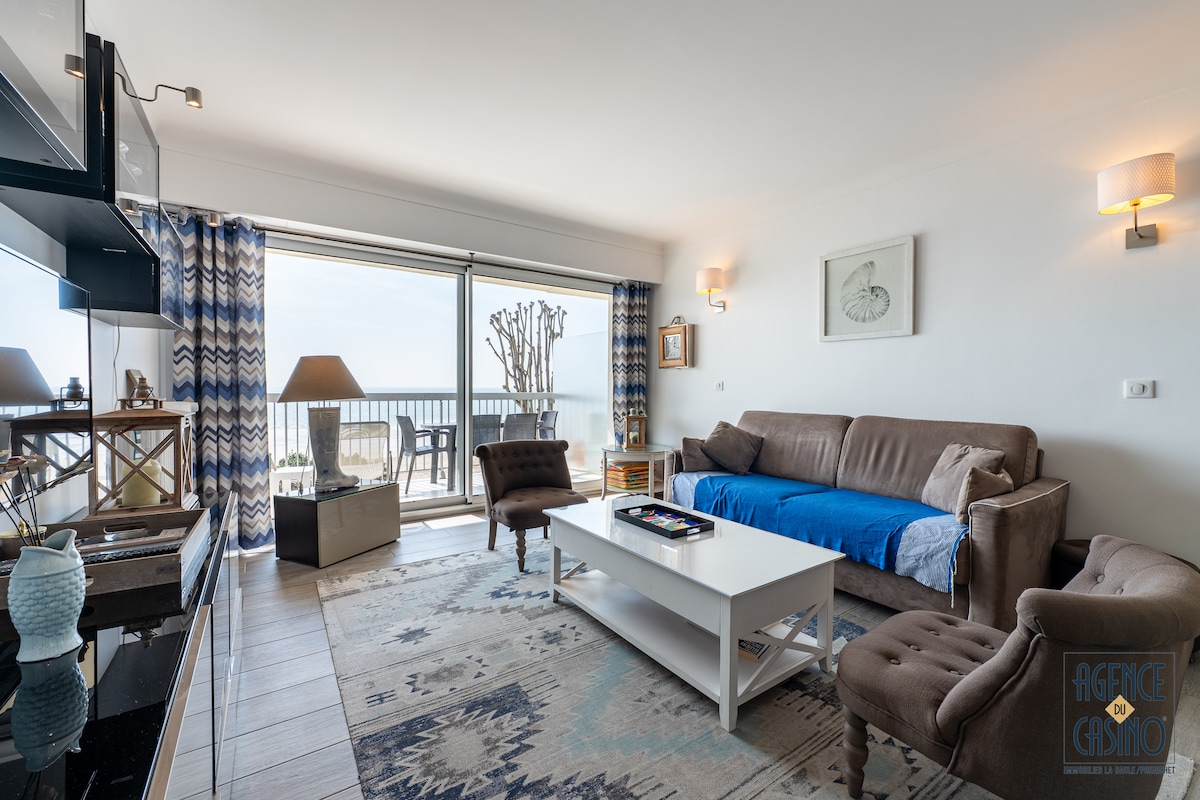 Διαμέρισμα ΜΕ ΘΕΑ ΣΤΗ ΘΑΛΑΣΣΑ, ιδανικά τοποθετημένο στη μέση του κόλπου, μεταξύ της Λεωφόρου Ντε Γκωλ και της Λεωφόρου Λαζαρίγκ. Ανακαινισμένο, με θέα στη θάλασσα. Κατοικία 85m² πολύ ευχάριστη με σύγχρονο γούστο και καθαρές γραμμές. Τρία υπνοδωμάτια (ένα διπλό κρεβάτι σε κάθε δωμάτιο) συμπεριλαμβανομένης μιας πολύ ευχάριστης σουίτας για τους γονείς. Ανοιχτή κουζίνα στο σαλόνι 40m² (πλυντήριο πιάτων, φούρνος, επαγωγικές εστίες, ψυγείο). Δύο μπαλκόνια στο σαλόνι. Μπορείτε να απολαύσετε το γεύμα σας με θέα στη θάλασσα. Αγορά της Λεωφόρου Lajarrige σε απόσταση 300 μέτρων.