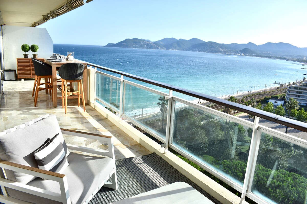 Ελάτε να ανακαλύψετε την ηρεμία στο "Panoramic Riviera Penthouse". Σας περιμένει εκπληκτική θέα στον κόλπο των Καννών από το ιδιωτικό σας μπαλκόνι, προσφέροντας έναν μοναδικό χώρο για να θαυμάσετε το εντυπωσιακό ηλιοβασίλεμα. Ένα διαμέρισμα που συνδυάζει αρμονικά την πολυτέλεια και την άνεση, ενισχυμένο από σύγχρονες ανέσεις, ένα απαλό αεράκι και κλιματισμό για τη μέγιστη άνεσή σας. Με άμεση πρόσβαση στην παραλία, βυθιστείτε στην ηρεμία της παράκτιας ζωής. Η απόδρασή σας ξεκινά εδώ για μια αξέχαστη εμπειρία στη Ριβιέρα.