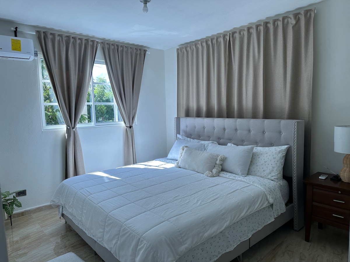 Όμορφη βίλα σε ήσυχη και ασφαλή περιοχή της Boca Chica, ιδανική για οικογένειες ή παρέες. Μόλις 5 λεπτά από την παραλία, τα σούπερ μάρκετ και τα εστιατόρια. Διαθέτει κοινόχρηστη πισίνα, γήπεδο τένις και μπάσκετ, μίνι μπαρ, γυμναστήριο και εξοπλισμένη κουζίνα. Ευρύχωροι χώροι, πάρκινγκ, wifi και ασφάλεια 24 ώρες το 24ωρο. Όλα όσα χρειάζεστε για μια άνετη, ιδιωτική και διασκεδαστική διαμονή. Ιδανικό για αξέχαστες διακοπές κοντά στη θάλασσα!