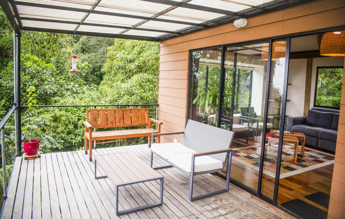 Πλήρως εξοπλισμένο ξυλόσπιτο, Βόρεια του Μανιθάλεθ, Ελ Καφετέρο. Αγνή φύση, θέα 360 μοιρών στα βουνά, περιτριγυρισμένη από φυτά, τουκάν, αετούς, κολιμπρί, πεταλούδες... Μπορείτε να πάτε στο Μανιζάλες με τα μέσα μαζικής μεταφοράς ή με αυτοκίνητο (10 λεπτά) Διπλό κρεβάτι, μπάνια με ζεστό νερό, πετσέτες, εξοπλισμένη κουζίνα, καναπές-κρεβάτι, χώρος γιόγκα, αιώρα, βιβλιοθήκη με βιβλία, βεράντα με πανοραμική θέα, ψησταριά...