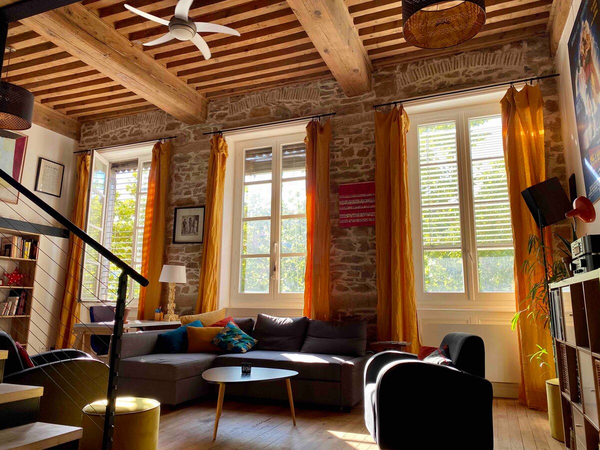 The apartment (45m²+ private patio) is located on the banks of the Saône, a 5-minute walk from the historic old Lyon district. Located on the 1st floor (no elevator), hillside of an old building on the bank of the Saône river, the building corridor is a little rustic (17th century). The apartment has been fully redesigned, keeping its authenticity. I made it my refuge, away from the hustle and bustle of Lyon. However, this place is not to everyone’s taste 😊. I describe later the pros & cons.