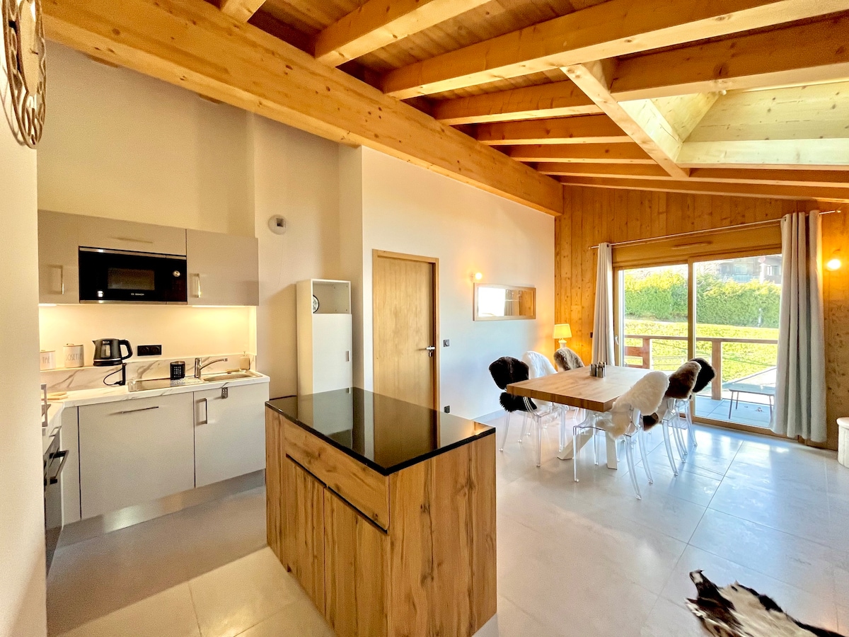 Αυτό το νέο διαμέρισμα σε μια πολυτελή κατοικία θα σας προσφέρει μια ήρεμη διαμονή με θέα στα βουνά και το δάσος. Ανοιχτό στη φύση, αυτό το ισόγειο με ηλιόλουστη βεράντα που βλέπει στα νοτιοανατολικά θα σας προσφέρει ξεκούραση και ηρεμία. Μέσα στο συγκρότημα, θα απολαύσετε τη θερμαινόμενη πισίνα με θέα το Μον Μπλαν. ΕΙΔΙΚΗ ΠΡΟΣΦΟΡΑ Χριστουγέννων: σας προσφέρουμε ένα χριστουγεννιάτικο δέντρο με μπάλες και γιρλάντες, για να το διακοσμήσετε με την οικογένειά σας και να απολαύσετε μια στιγμή κοινής χρήσης και φιλικότητας!