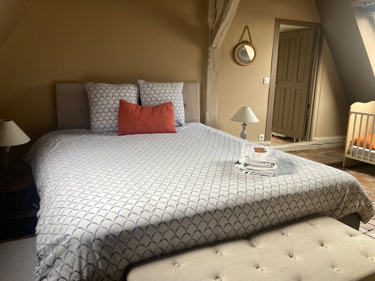 Το σπίτι σας έχει δύο δωμάτια στον δεύτερο ιδιωτικό όροφο: ένα ήσυχο υπνοδωμάτιο, διακοσμημένο, με το φως δύο παραθύρων ( γραφείο, ένα διπλό κρεβάτι, μια μικρή ντουλάπα, μια κομοδίνο και δύο πολυθρόνες) και ένα πρόσφατο ντους, μια κοινόχρηστη τουαλέτα στον πρώτο όροφο χωρίς νιπτήρα, τη σκάλα του μυλωνά από τον 1ο όροφο στον 2ο όροφο. Παλιό σπίτι ήσυχη περιοχή 15 λεπτά με τα πόδια από το κέντρο / σιδηροδρομικό σταθμό. 1 επισκέπτης. Χωρίς επίσκεψη. 100% βαμβακερά σεντόνια πλυμένα στους 60 βαθμούς