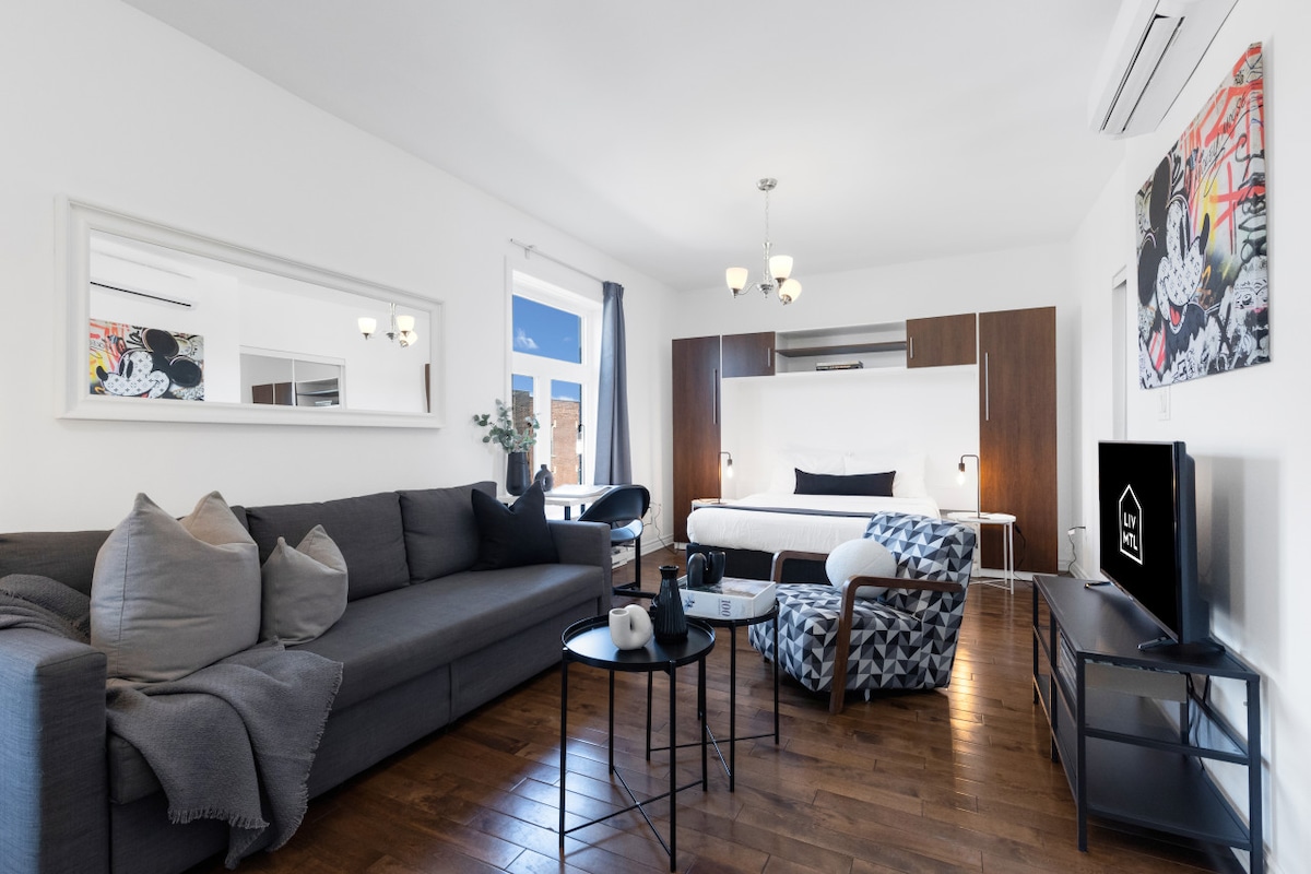 Απολαύστε τη γοητεία του Plateau σε αυτήν τη φωτεινή, κομψή σοφίτα! Το φυσικό φως πλημμυρίζει τον ανοιχτό χώρο, αναδεικνύοντας τους τοίχους από τούβλα, τα ψηλά ταβάνια και τον μοντέρνο σχεδιασμό. Βγείτε έξω και απολαύστε μια ζωντανή, καλλιτεχνική γειτονιά γεμάτη μοντέρνα καφέ, μπουτίκ και γκαλερί. Περπατήστε μέχρι κορυφαία εστιατόρια, θέατρα, παντοπωλεία και αγορές, σταθμούς του μετρό, ποδηλατόδρομους και το Mont Royal. Όλα όσα χρειάζεστε για μια αυθεντική, αξέχαστη διαμονή στην καρδιά της πόλης!🚲🍽✨