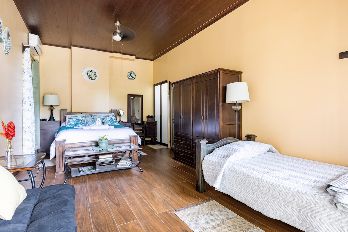 Αυτή η ιδιοκτησία σάς προσφέρει την ευκαιρία να μείνετε σε ένα ιδιωτικό διαμέρισμα δίπλα στο όμορφο τροπικό δάσος μας, όπου μπορείτε να δείτε βραδύποδες, πιθήκους, κολιμπρί και πολλά ζώα. Περιτριγυρισμένο από τα όμορφα ποτάμια μας, όπου μπορείτε να κολυμπήσετε και να περπατήσετε στα μονοπάτια μας. Όλα αυτά είναι επίσης προσβάσιμα σε παιδιά από οποιαδήποτε ηλικία!