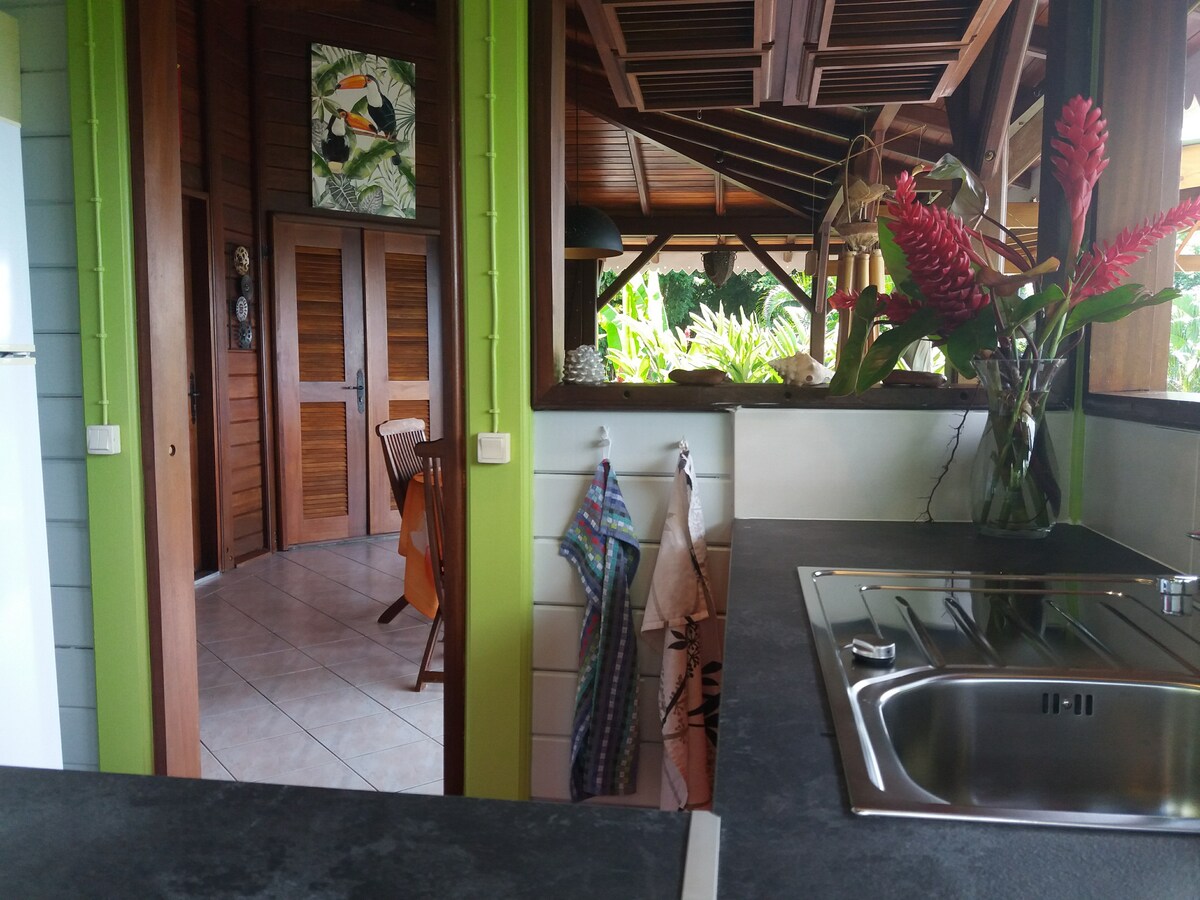 Απολαύστε το γοητευτικό περιβάλλον αυτού του ρομαντικού καταλύματος στη φύση. Βρίσκεται απέναντι από τον κόλπο Saintes, που θεωρείται ένας από τους πιο όμορφους κόλπους στον κόσμο. Αυτή η κρεολική καζέλα είναι οικολογική, καθώς είναι κατασκευασμένη εξ ολοκλήρου από ξύλο και είναι αυτόνομη σε νερό και ηλεκτρική ενέργεια. (βρόχινο νερό και ηλιακή ενέργεια). Το υπαίθριο ντους σε θερμοκρασία δωματίου μέσα σε ένα φυτικό περιβάλλον θα σας προσφέρει μια εγγυημένη αλλαγή σκηνικού. Η κουζίνα σχεδιασμένη και επιπλωμένη με κρεολικό πνεύμα θα σας προσφέρει όλο τον απαραίτητο εξοπλισμό για μια ονειρική διαμονή.