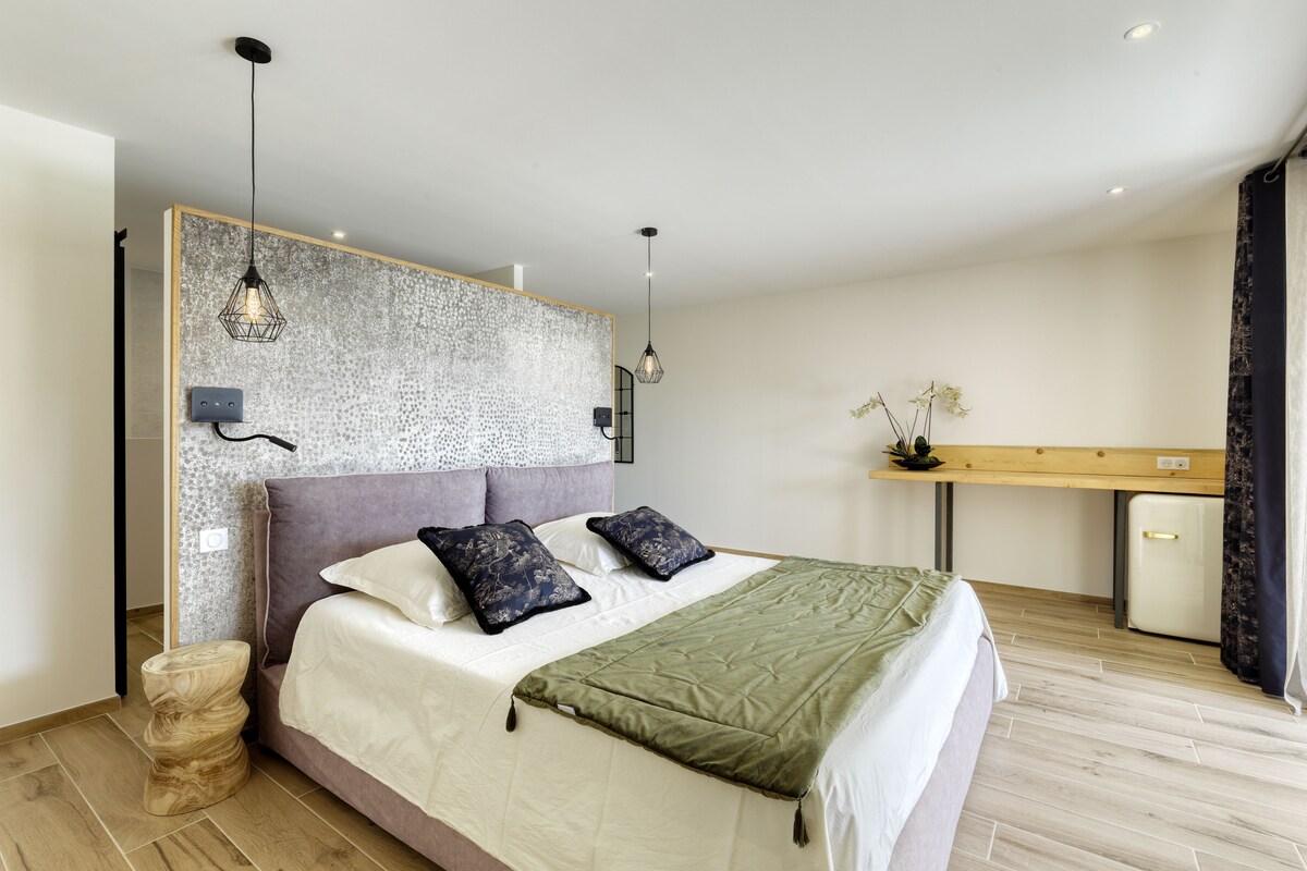 Studio indépendant entièrement équipées avec sa terrasse privée. Sur la propriéte, en espaces partagés avec 3 chambres d'hotes : vous avez acces au parking, jardin, solarium, espace pool house avec piscine, jacuzzi et bar La propriété est pensée pour vous offrir un confort absolu tout en se sentant comme à la maison.