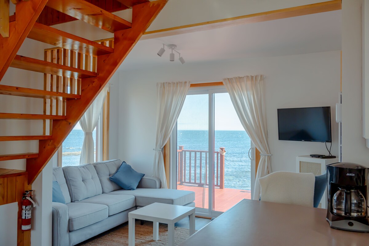 Τα 6 σαλέ προσφέρουν εξαιρετική θέα στα βουνά, στο ποτάμι ή στη θάλασσα. Έχουν άμεση πρόσβαση στην παραλία και απέχουν 45 λεπτά από το Πάρκο της Γκασπέζι (όρος Σικ-Σοκ). Θα εκτιμήσετε τα σπίτια για την άνεση και τα άνετα κρεβάτια, για τη θέα, για τις εγκαταστάσεις και τη σόμπα ξύλου το χειμώνα. Τα σαλέ είναι ιδανικά για ζευγάρια, οικογένειες με παιδιά και σκυλιά. Αριθμός καταχώρησης CITQ: 239083