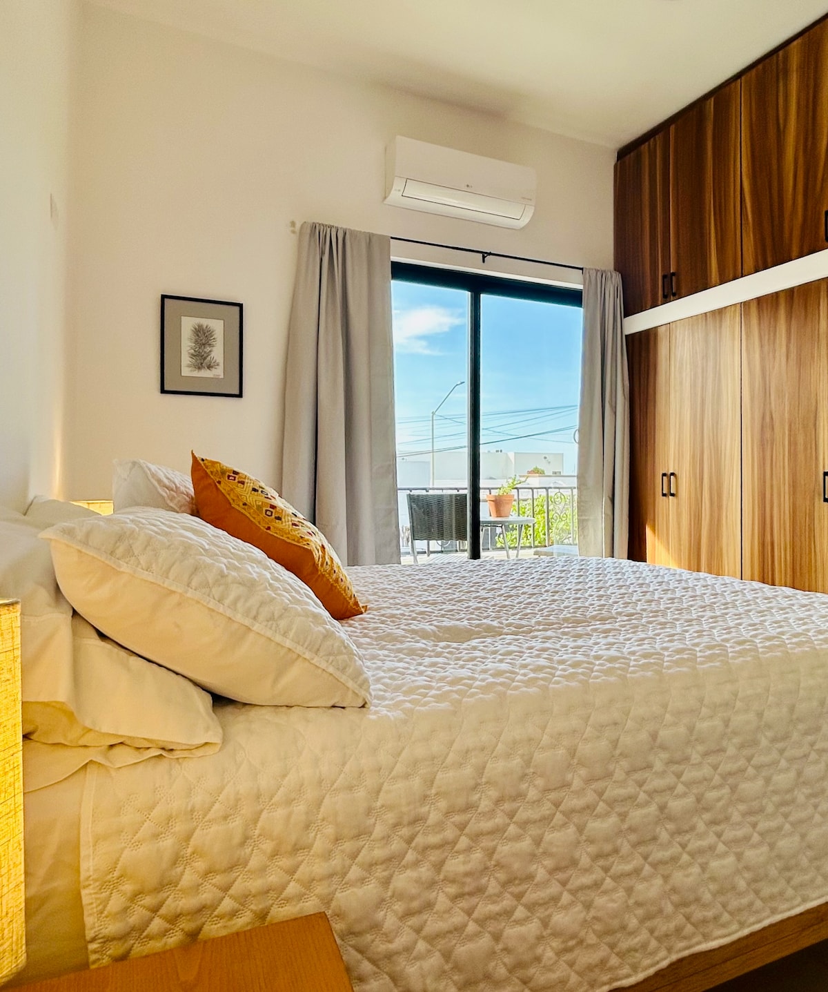 ✨ Ταράτσα με μπανιέρα 1 τετράγωνο από τη θάλασσα Απολαύστε εκπληκτικά ηλιοβασιλέματα από το ιδιωτικό τζακούζι στην ταράτσα. Αυτό το μοντέρνο διαμέρισμα είναι ιδανικό για μια ρομαντική απόδραση ή ένα χαλαρωτικό διάλειμμα. Βρίσκεται σε μια ήσυχη περιοχή, μόλις έναν δρόμο από τη θάλασσα και περιβάλλεται από φοινίκες και θαλασσινή αύρα. 🛏 1 άνετο δωμάτιο 🛁 2 πλήρη μπάνια Ιδιωτική 👙 ταράτσα με μπανιέρα ☕ Εξοπλισμένη κουζίνα + κλιματισμός. 🌐 Περιλαμβάνονται Wi-Fi και πάρκινγκ. Χαλαρώστε, αποσυνδεθείτε!