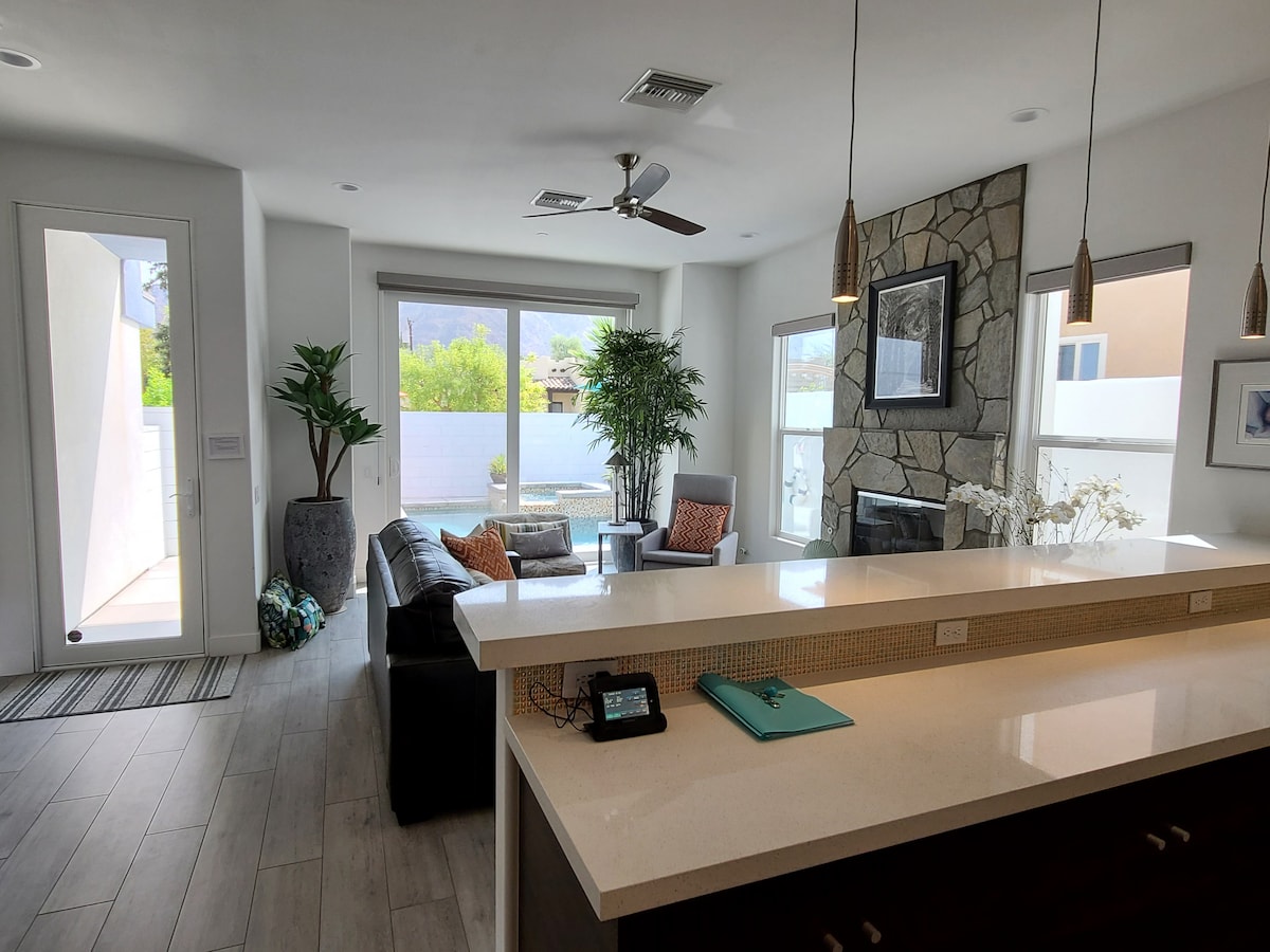 Πρόσφατα διακοσμημένο και ανακαινισμένο σπίτι 280 τ.μ. στο PGA West Nicklaus Course. Τα εξαιρετικά ψηλά ταβάνια 12' και ο όμορφος σχεδιασμός κάνουν αυτό το εξοχικό σπίτι στην έρημο μια πολυτελή απόδραση. Η τέλεια οικογενειακή απόδραση με μια ειδικά σχεδιασμένη μοντέρνα πισίνα και ράφι ηλίου για τα μικρά παιδιά, με συναγερμούς ασφαλείας για παιδιά στις πόρτες της πισίνας για άνεση. Κάθε λεπτομέρεια έχει ληφθεί υπόψη, από την καφετιέρα Kerurig και την μηχανή εσπρέσο μέχρι το τζάκι και τους άνετους χώρους συγκέντρωσης για οικογένειες και φίλους!