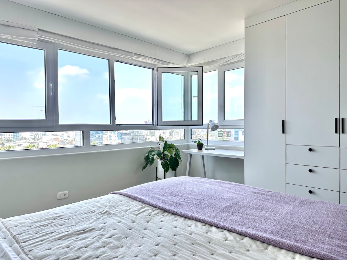 Welcome to Sky Lima 28, where a unique experience awaits you from the 28th floor. Enjoy breathtaking panoramic views of Lima city and the Pacific Ocean as you immerse yourself in the unparalleled 'sunset style' of Lima from the comfort of your accommodation. Rest assured knowing that your privacy and security are guaranteed. We look forward to welcoming you soon!