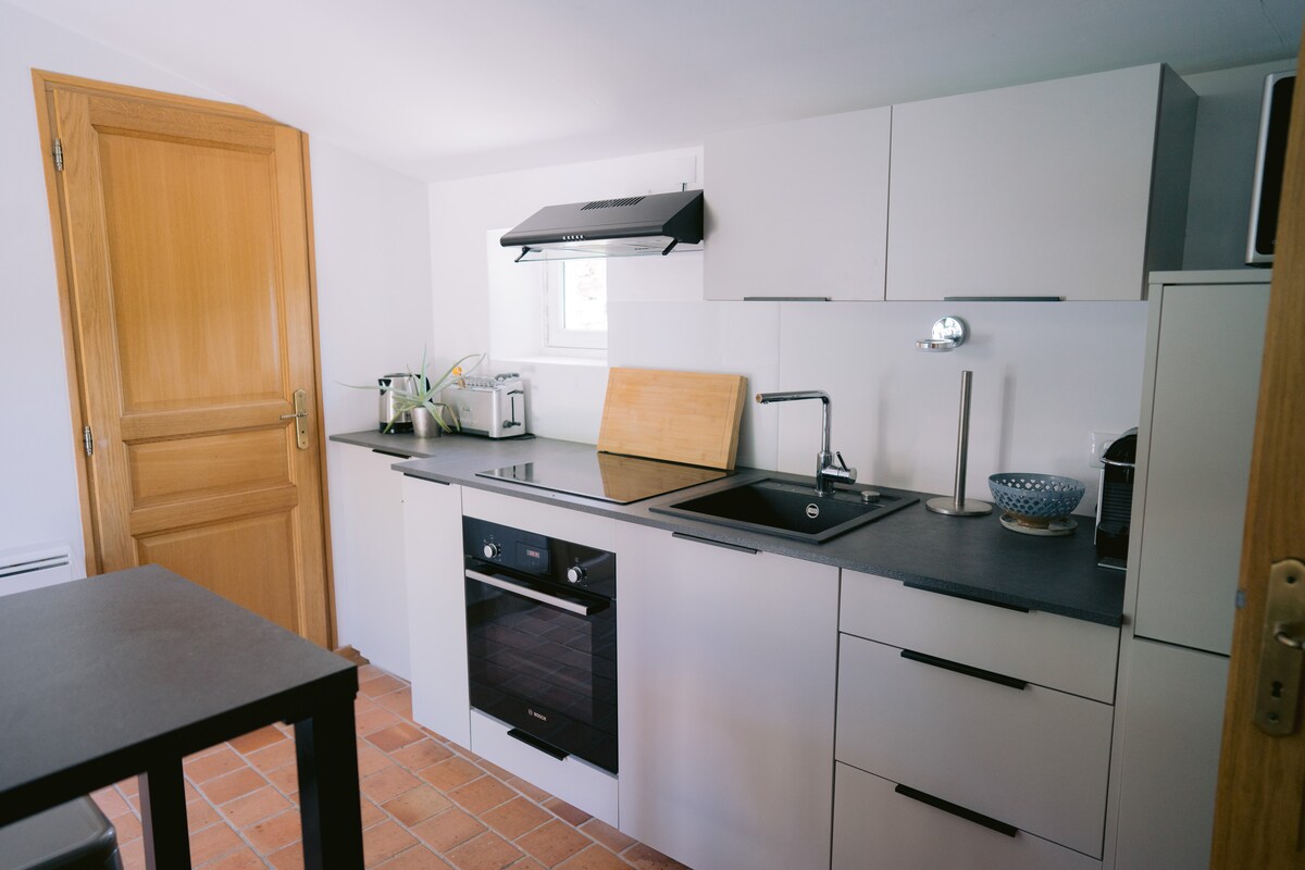 Νέο και φωτεινό στούδιο 20 τ.μ. Ιδανικά τοποθετημένο σε ένα χωριό 20 λεπτά από τη Νάντη, 10 λεπτά από το Κλισόν και 1 ώρα από το Πυί ντου Φου Το στούντιο είναι άνετο, πλήρως επιπλωμένο και εξοπλισμένο: διπλό κρεβάτι, τηλεόραση, wi-fi, εξοπλισμένη μικρή κουζίνα, μπάνιο με ντους και ξεχωριστή τουαλέτα. Μπορείτε να απολαύσετε μια βεράντα με θέα τους αμπελώνες και έναν ιδιωτικό χώρο στάθμευσης για το όχημά σας. Μια ψησταριά υγραερίου είναι επίσης στη διάθεσή σας Το +: Το πρωινό συμπεριλαμβάνεται στην τιμή