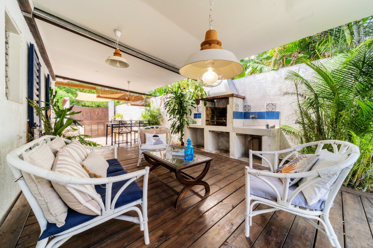 Φωτεινό μπανγκαλόου 5 λεπτά από την παραλία με πισίνα
