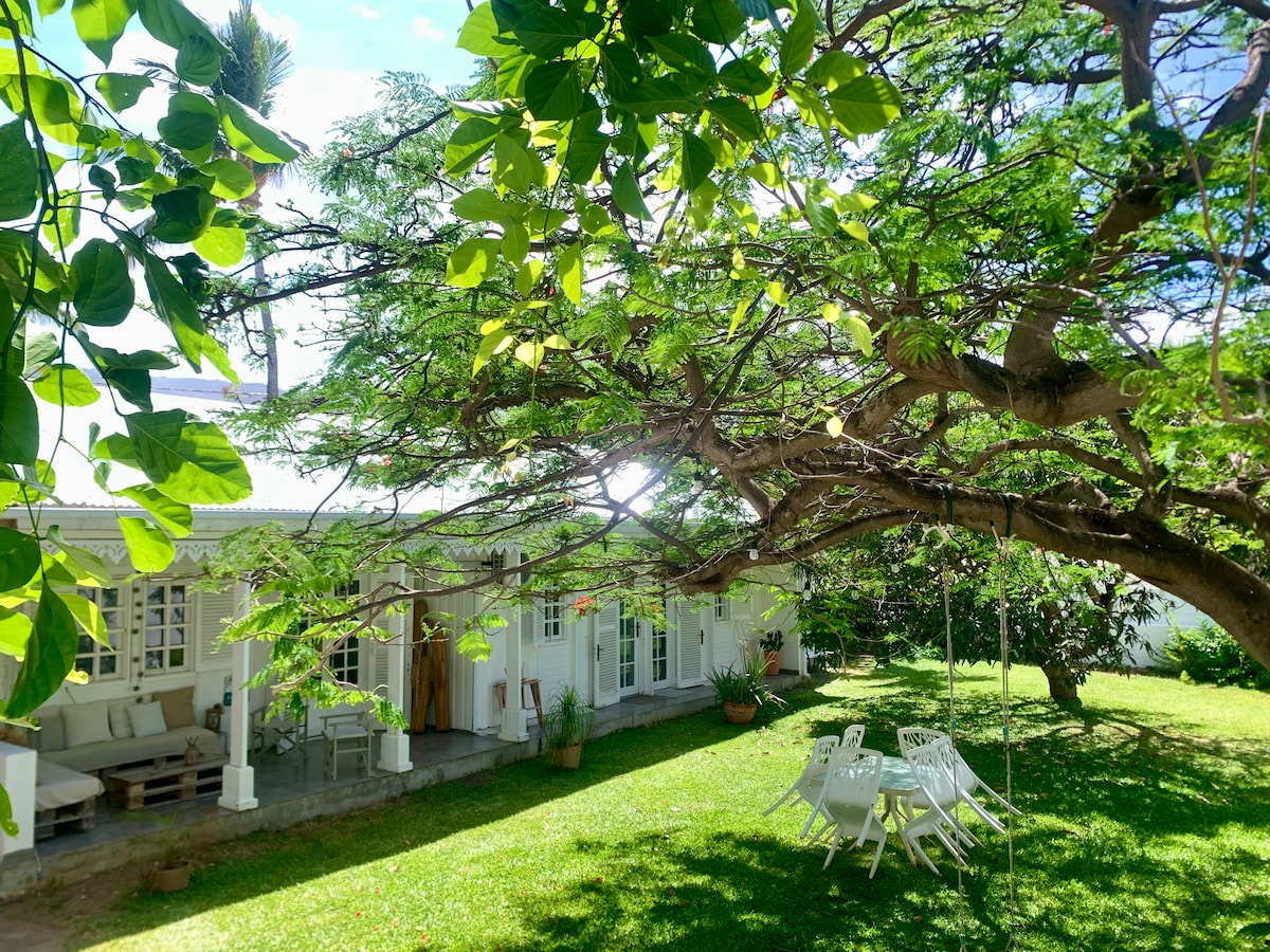Καλώς ήρθατε στη γκαλερί τέχνης της Francine! Προσφέρω 1 διαμέρισμα (T2) που βρίσκεται στον 1ο όροφο, το οποίο έχει τη δική του ανεξάρτητη πρόσβαση με ιδιωτικό και ασφαλή χώρο στάθμευσης. Όμορφα διακοσμημένο με τις δημιουργίες μου: πίνακες/κεραμικά και ιδανικά τοποθετημένο ανάμεσα στη θάλασσα και τη σαβάνα, στο Μπουκάν, θα έχετε πρόσβαση στην πιο όμορφη παραλία του νησιού, που βρίσκεται 20 μέτρα μακριά με ιδιωτική πρόσβαση. Ο περίπατος Boucan απέχει μόλις 2 λεπτά με τα πόδια. Το διαμέρισμα είναι πλήρως επιπλωμένο και κλιματιζόμενο. Γοητευτικό και πολύ λειτουργικό διαμέρισμα