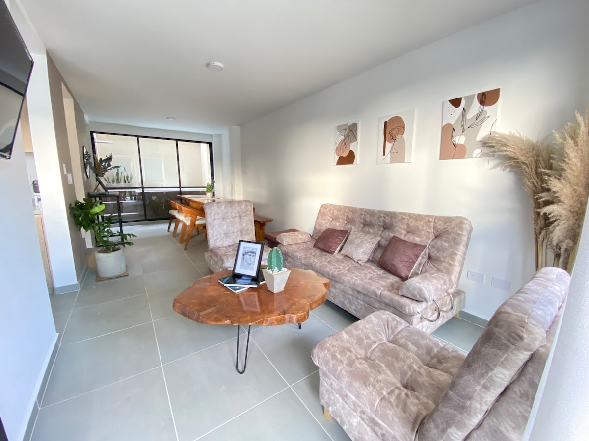 Εντυπωσιακό και κομψό διαμέρισμα που περιβάλλεται από τη φύση, πλήρως εξοπλισμένο για μια ευχάριστη διαμονή. Θα απολαύσετε έναν άψογο, νέο χώρο με φρέσκο και φιλόξενο σχεδιασμό. 24ωρη παρακολούθηση. 5 λεπτά από το αεροδρόμιο και 20 λεπτά από το Café Park. Παροχές θερέτρου: 3 πισίνες, τσουλήθρα, παιδικά παιχνίδια, τζακούζι, μπάρμπεκιου, πλυντήριο ρούχων. Σε στρατηγική τοποθεσία για να γνωρίσετε όλους τους άξονες καφέ και πόλεις όπως (Pereira 1h30m και Cali 2h30m).