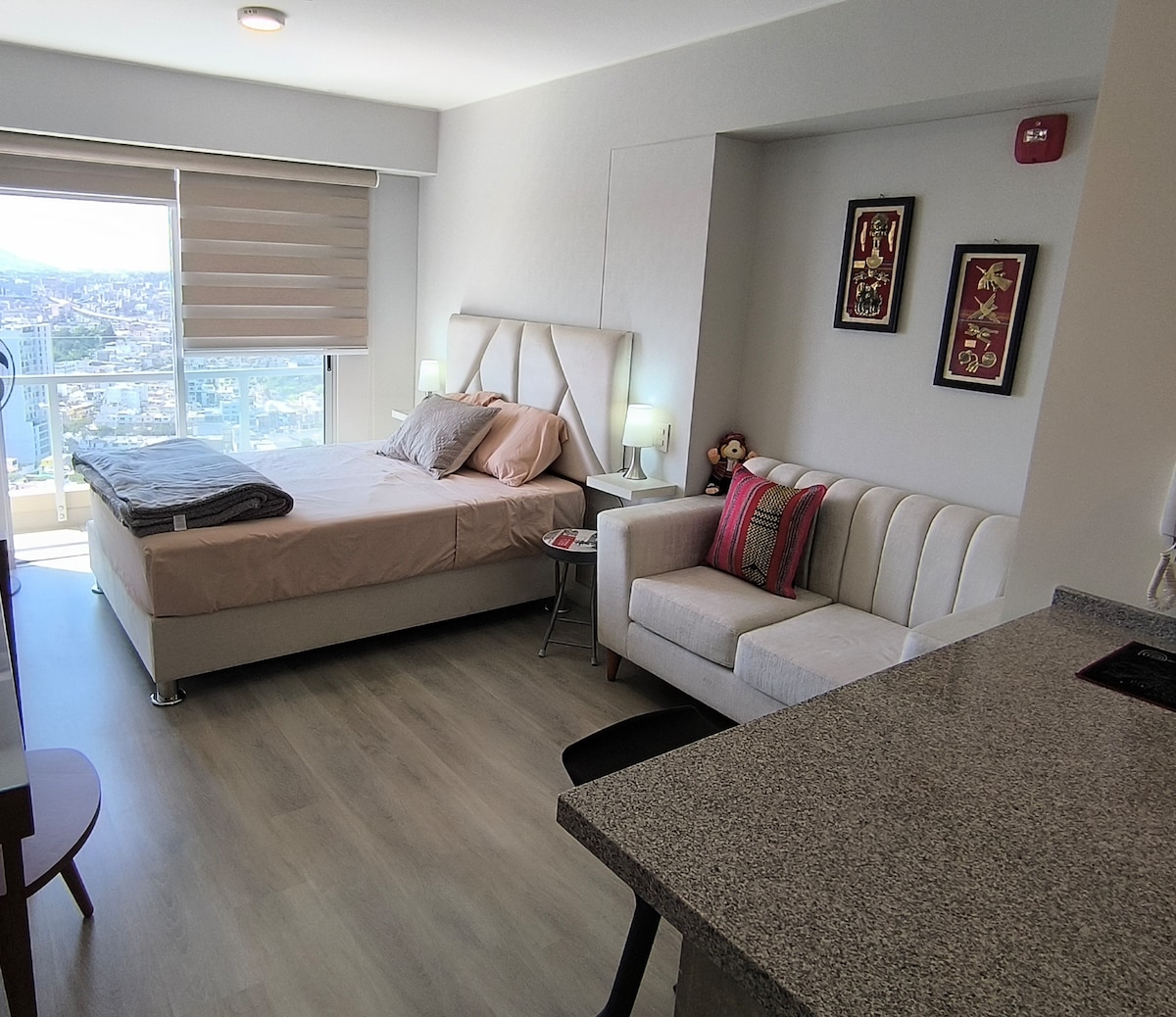 Μοντέρνα σοφίτα, πολύ καλά τοποθετημένη και με απίστευτη πανοραμική θέα από τον 35ο όροφο. Εύκολη πρόσβαση σε κεντρικούς δρόμους, εμπορικά κέντρα, μουσείο, τρένο, οικονομικό κέντρο, κλινικές, γυμναστήρια, πάρκα. Διαθέτει πλυντήριο ρούχων, κύριο μπάνιο, μικρή κουζίνα, εξοπλισμένη κουζίνα, ντουλάπα, ζεστό νερό, τηλεόραση και WIFI. Κοινόχρηστοι χώροι: Θέα στην πόλη, Ταράτσα, Συνεργασία. Κοντά σε τουριστικές περιοχές όπως το Μιραφλόρες, το Μπαρράνκο και το Ιστορικό Κέντρο της Λίμα.