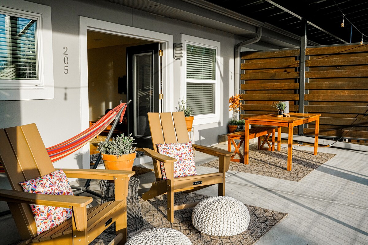 Our Marfa, TX inspired condo is the perfect retreat after a day exploring this incredible city! Located near restaurants, galleries, specialty stores and generous tree-lined streets. Start your day with coffee and pastries from the famous Swedish Hill Bakery and end with an intimate dinner at Clark’s Oyster Bar - just steps away. Enjoy our bright, thoughtfully furnished condo w/ French doors opening to your own south facing, sunny patio equipped with an outdoor living/dining/working space!