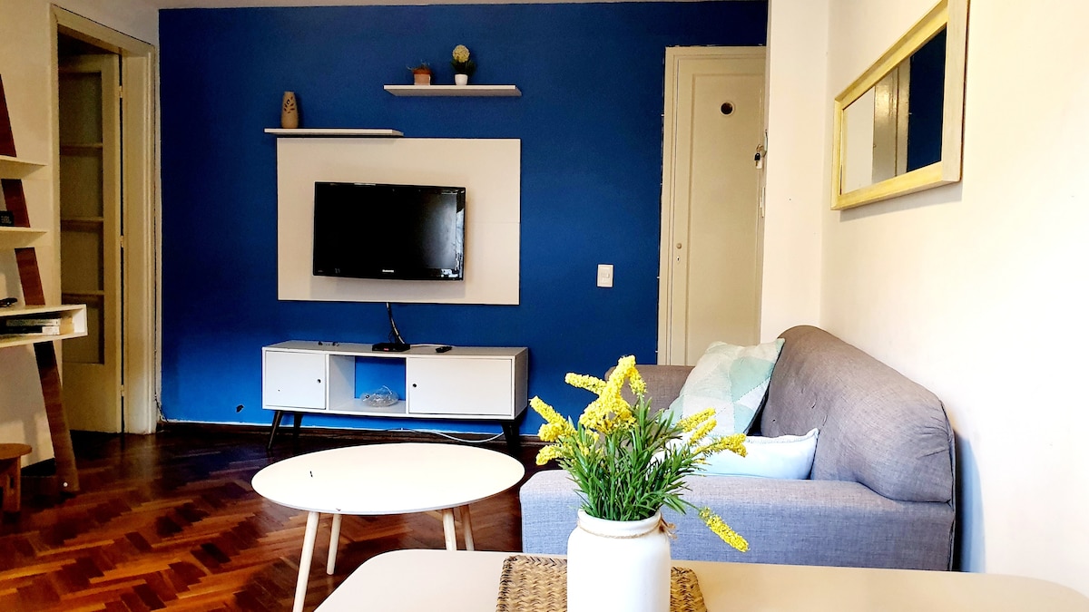 Modern 1-bedroom apartment in Parque Rodó. Bright and quiet, with large double-glass windows. Fully equipped kitchen with fridge, oven, microwave, utensils and tableware. Open living-dining area with 43" Smart TV and a home office space with Wi-Fi. Bedroom with queen bed and balcony access, plus a full bathroom. Excellent location: steps from Parque Rodó and the Rambla, surrounded by cafés, shops, and public transport at the door.