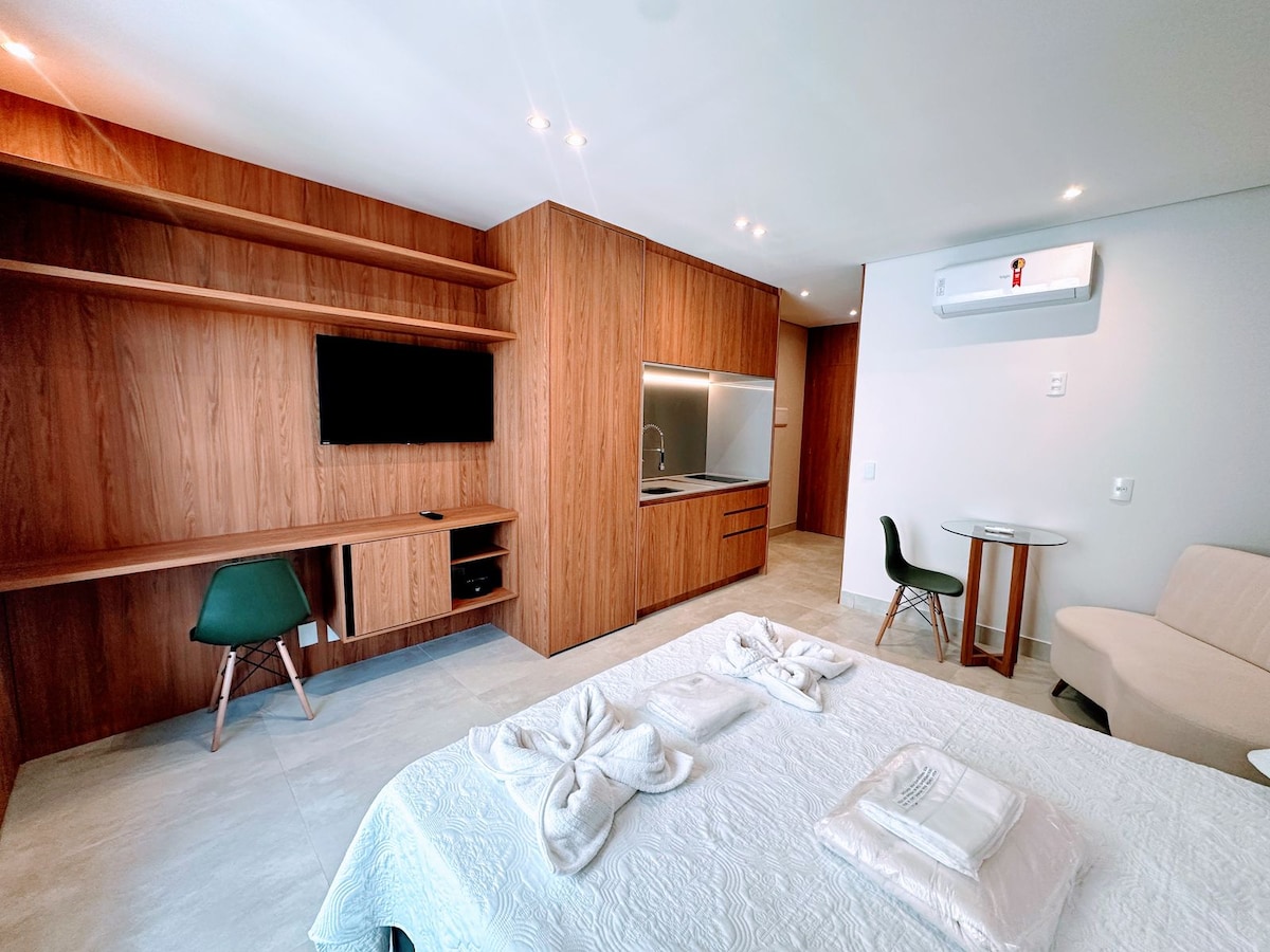Διαμέρισμα στο Asa Norte με κλιματισμό Έχει εξαιρετική τοποθεσία σε μια αριστοκρατική γειτονιά κοντά σε όλα: αρτοποιείο, εστιατόρια, φαρμακείο, πλυντήριο, σούπερ μάρκετ, εμπορικά κέντρα και οικολογικό πάρκο με δύο πηγές. Unb και Ceub σε απόσταση 3 χλμ. Στο Esplanada dos Ministérios (Εσπλανάδα των Υπουργείων) σε απόσταση 5 χιλιομέτρων. Κρεβάτι Queen size με στρώμα με ανεξάρτητα ελατήρια, ιδανικό για ξενοδοχεία. Ευρυζωνική σύνδεση Claro Διαθέτει SmartTV 43", μίνι μπαρ, φούρνο μικροκυμάτων, φίλτρο κρύου νερού Διαθέσιμοι δημόσιοι χώροι στάθμευσης και στάση λεωφορείου σε απόσταση μικρότερη από 100 μέτρα.