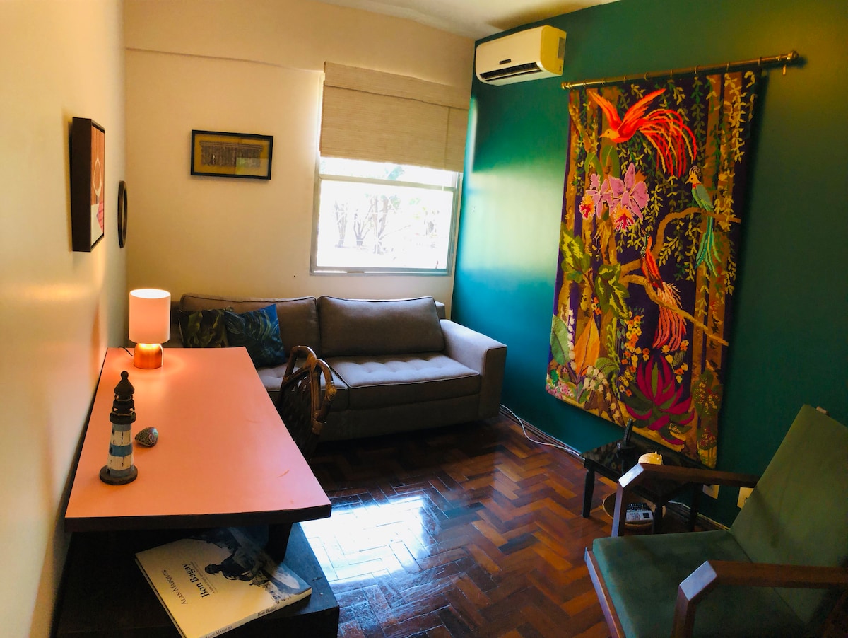 Disponibilizo meu apartamento para pequenos grupos que desejam um cantinho acolhedor e bem perto de tudo! Internet de alta velocidade, TV à cabo, ar condicionado entre outras comodidades. Caso você fique hospedado mais de 15 dias, terá direito a uma faxina adicional durante a sua estada.