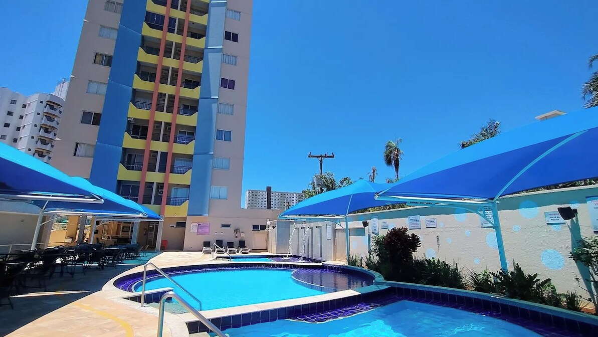 Συγχαρητήρια! Ανακαλύψατε την ιδανική απόδραση στο Caldas Novas: Περιλαμβάνεται ήδη🚗 ιδιωτικό γκαράζ. 📍 Τοποθεσία (με τα πόδια) από: αρτοποιεία, φαρμακεία, κλαμπ, εμπορικά κέντρα, εστιατόρια, εκθέσεις, καταστήματα... 🌊 4 πισίνες και σάουνα με ιαματικά νερά (θερμαινόμενη), 1 φυσική, 1 υγρό μπαρ. 🍴 Εξοπλισμένη κουζίνα. 🥶 Κλιματισμός. 📺 Τηλεόραση, Wi-Fi και χώρος εργασίας. Τα 🐾 ζώα είναι ευπρόσδεκτα. Δίχτυα 🪟 ασφαλείας (παράθυρα και μπαλκόνι) για περισσότερη ασφάλεια για παιδιά και κατοικίδια. Μη χάνετε χρόνο! 🚪🎉