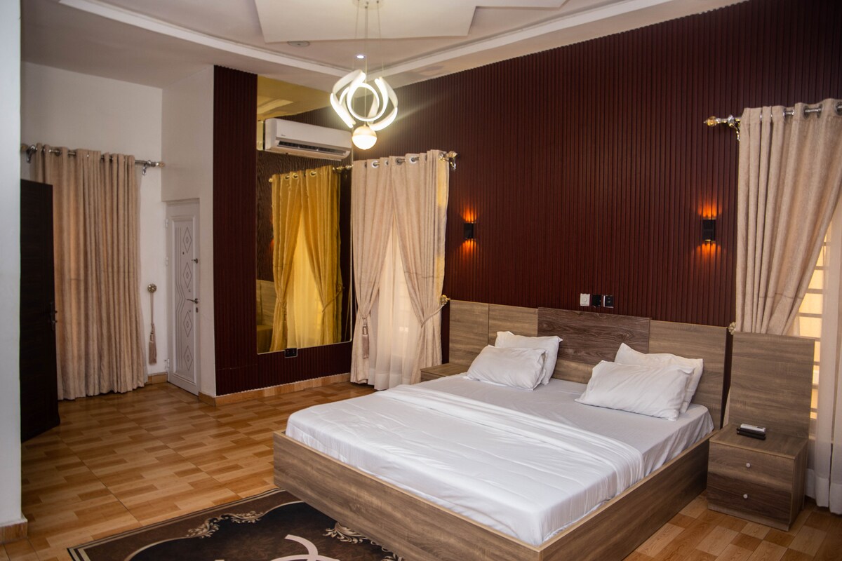 Καλώς ήρθατε στο Ibi's, το μοντέρνο καταφύγιό σας κοντά στην Ikeja, την Ogba και την Agege, στην καρδιά του Λάγος της Νιγηρίας! Απολαύστε δωμάτια με στιλάτα μπάνια, μια γαλήνια πισίνα, πισίνα και άνετα καθίσματα σε ένα ασφαλές κτήμα. Κάθε μονάδα διαθέτει έξυπνη τηλεόραση 65 ιντσών με DSTV, ίντερνετ υψηλής ταχύτητας, πλήρως εξοπλισμένη κουζίνα και μπαλκόνι με καθαρό αέρα. PlayStation/Xbox διαθέσιμα κατόπιν αιτήματος. Μόλις 20 λεπτά από τα δύο αεροδρόμια, 15 λεπτά από το εμπορικό κέντρο Ikeja και 5 λεπτά από ένα σούπερ μάρκετ. Κάντε κράτηση τώρα για άνεση, στιλ και ευκολία!