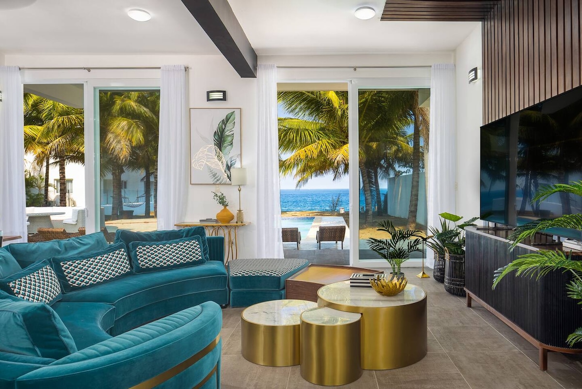 We are back! Previously a long-term rental, now reopened for short-term stays! True oceanfront modern 4BR/4BA villa on the DR North Coast of Sosúa. Swim in the pool overlooking the ocean—sunset here is unreal. Private palms, dramatic coastline views, and terrace lounge space for coffee, grilling, and late-night hangs. Perfect for families and friend groups. Sleeps up to 10. Prime weeks book fast—grab your dates. Fast Wi-Fi + A/C with professional check-in.